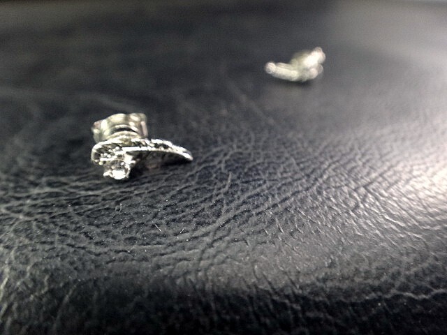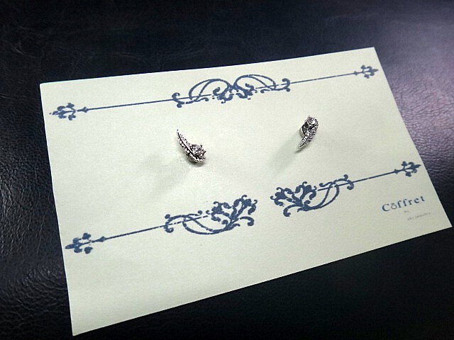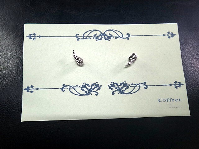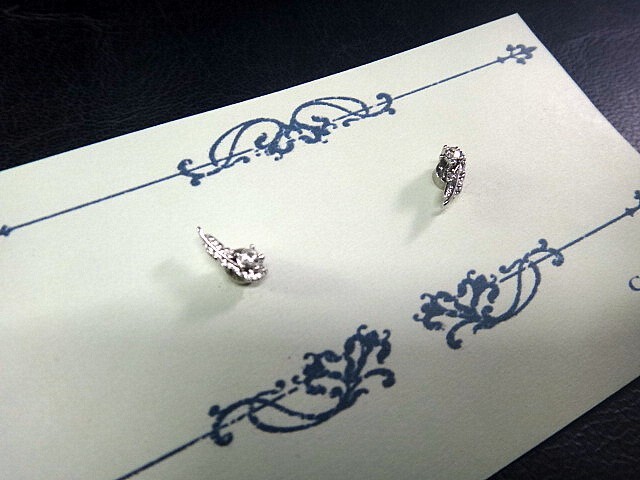 Feather"フェザー"にスワロフスキー (クリア)を留めた マグネットイヤリング