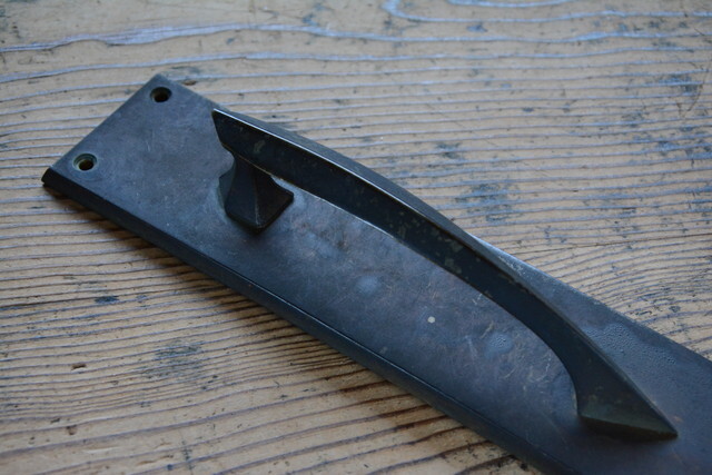 古い真鍮鋳物の座付フランス取手です。