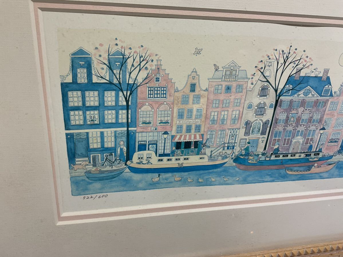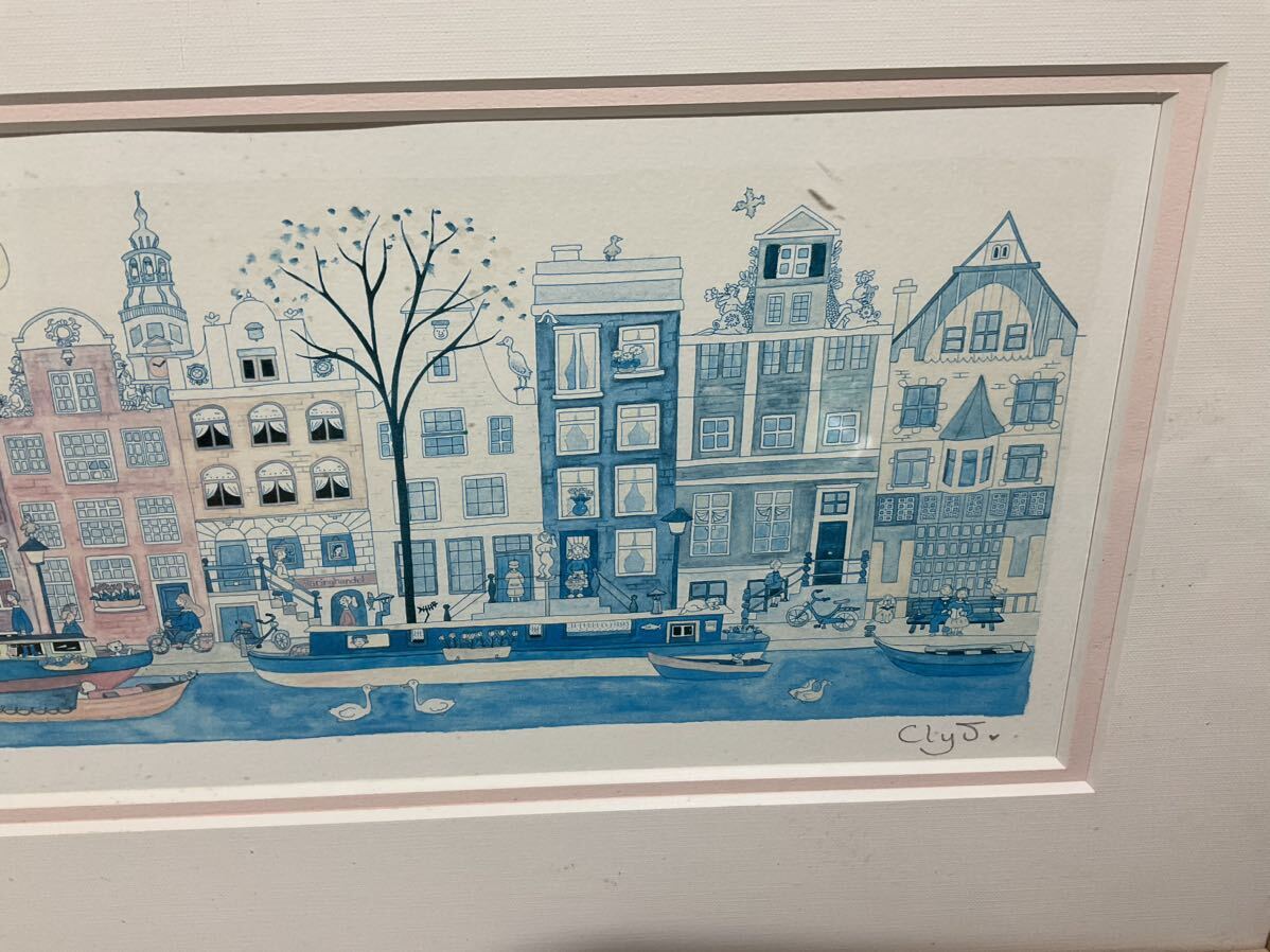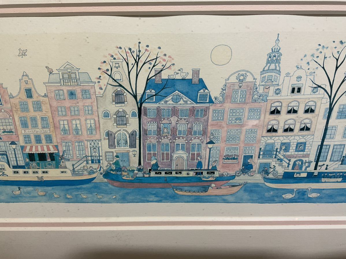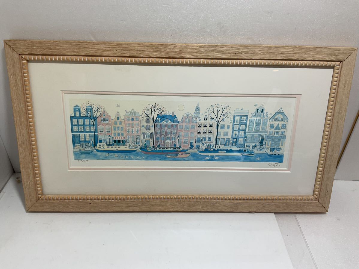 クリーブ Clyv 直筆サイン・シール 522/600 『アムステルダムの岸辺(オランダ)』ダイヤモンド・スクリーニング 風景画 額装