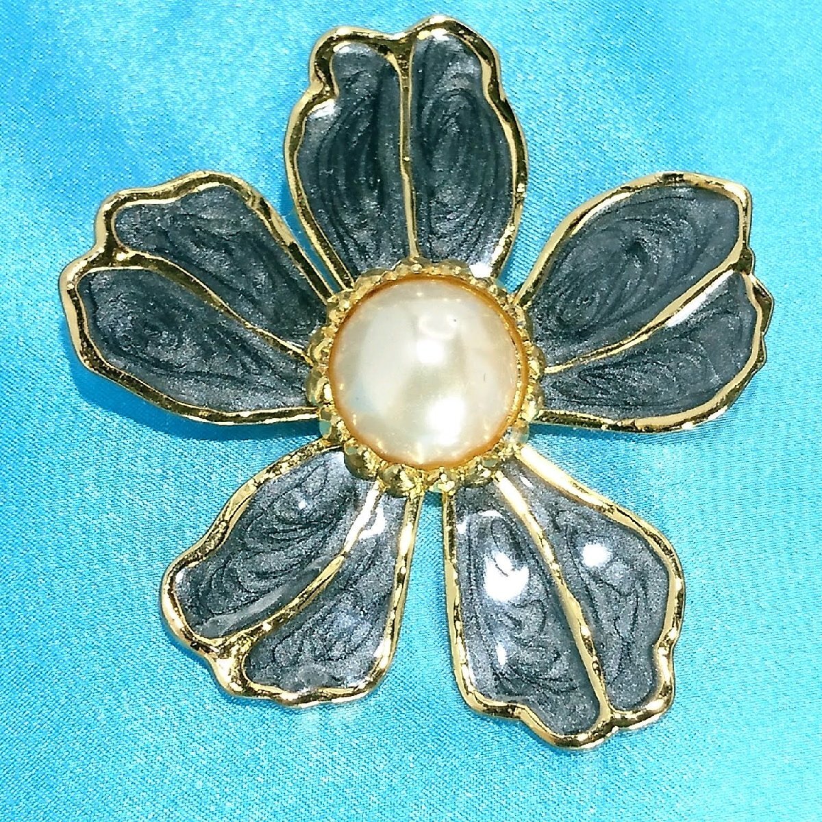 送料無料)ビンテージ☆パール 七宝仕上げ お花モチーフ☆アンティーク ブローチ A23845