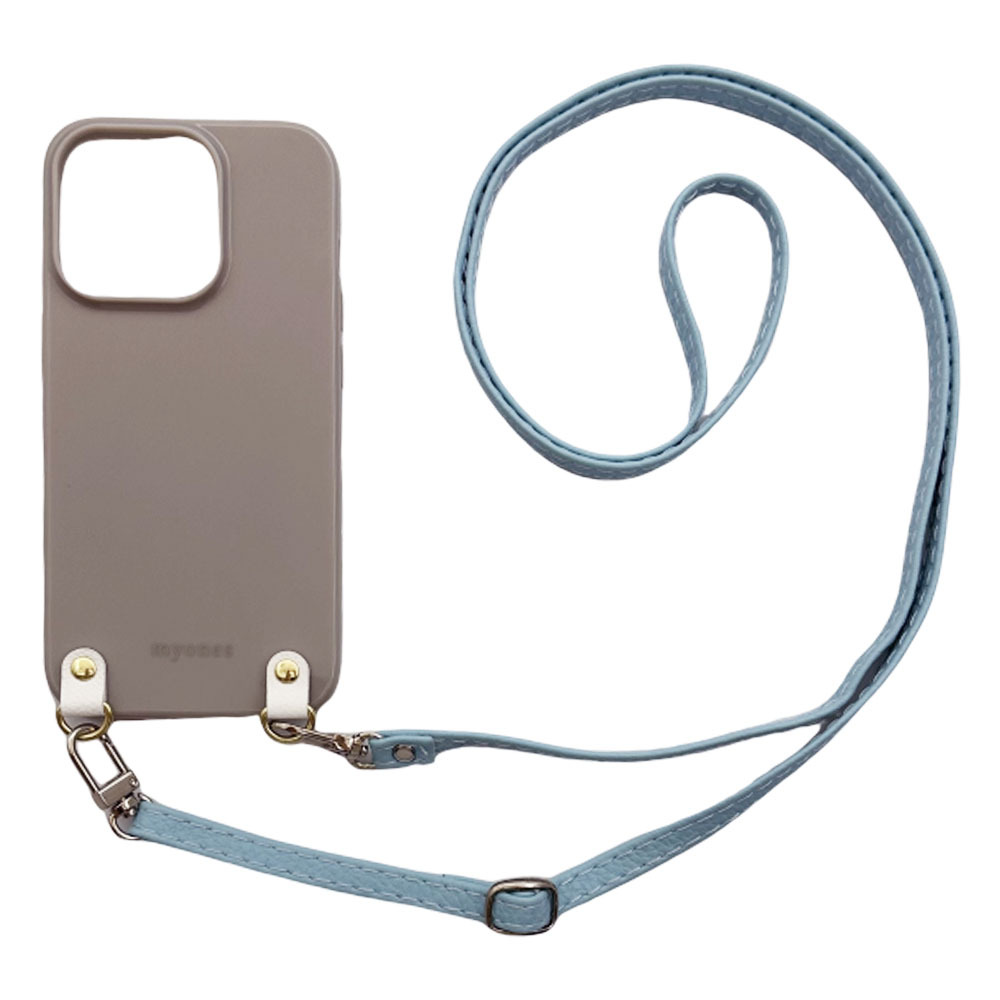 iPhone14 Plus(くすみグレー/ブルー)PUレザー ソフトケース スマホショルダー 肩掛け 首かけ 斜めがけ かわいい 韓国