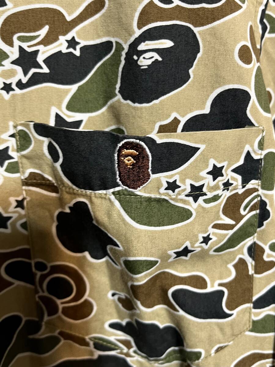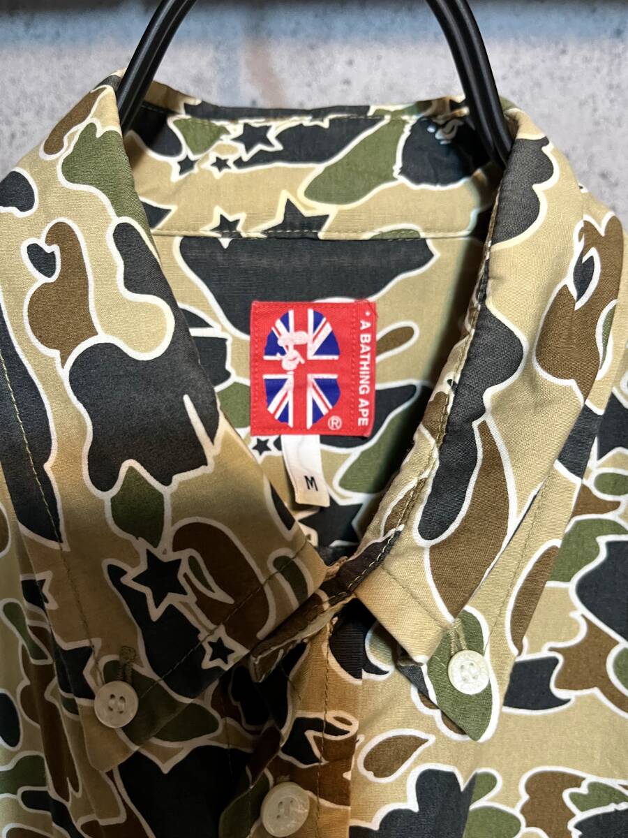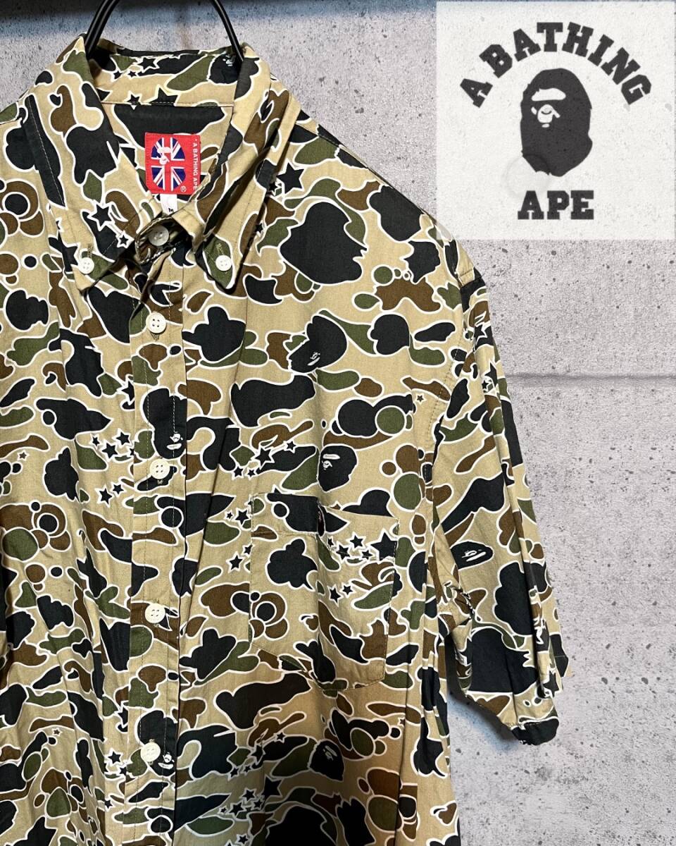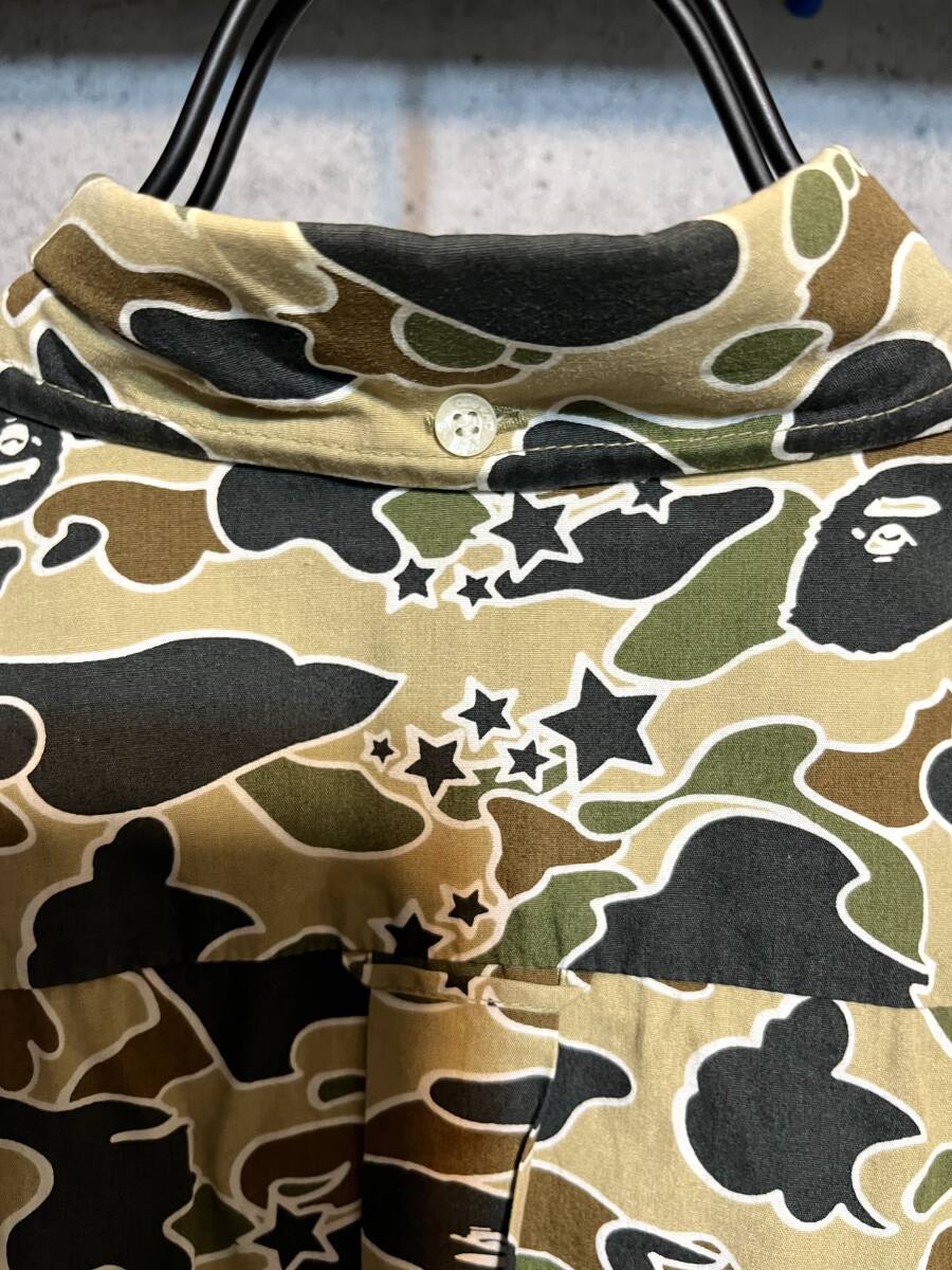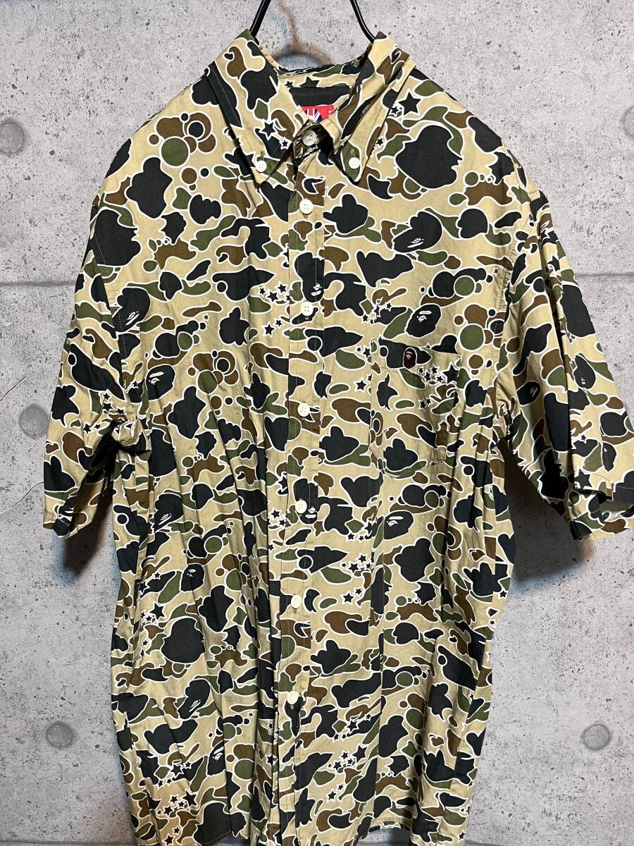 90s ヴィンテージ 【 NIGO期 】 A Bathing Ape BAPE アベイシングエイプ ★ 1stカモ ファーストカモ サルカモ カモ柄 迷彩 ボタンダウン 半袖シャツ ★ 日本製 BAPESTA