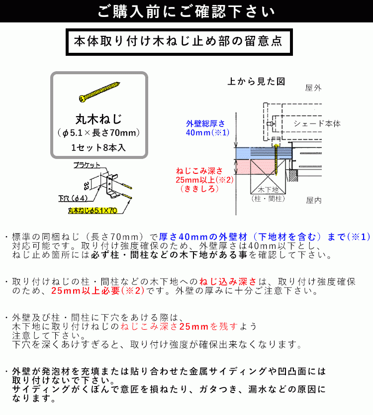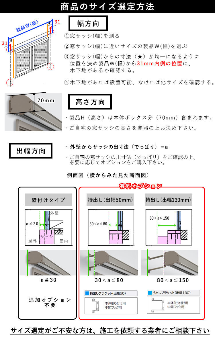 シェードを取り付ける場所にに出っぱりがない場合、窓の下に干渉するものがない場合、