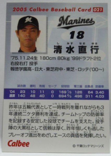 カルビープロ野球カード2005年#021【清水 直行(千葉ロッテ マリーンズ)】平成17年チップスおまけ食玩トレーディングカード【中古】送料込