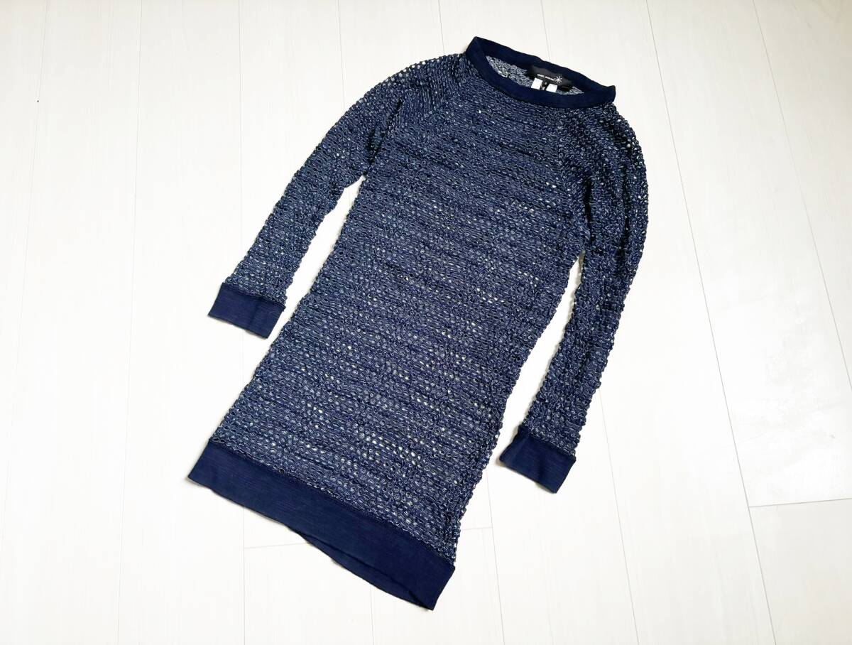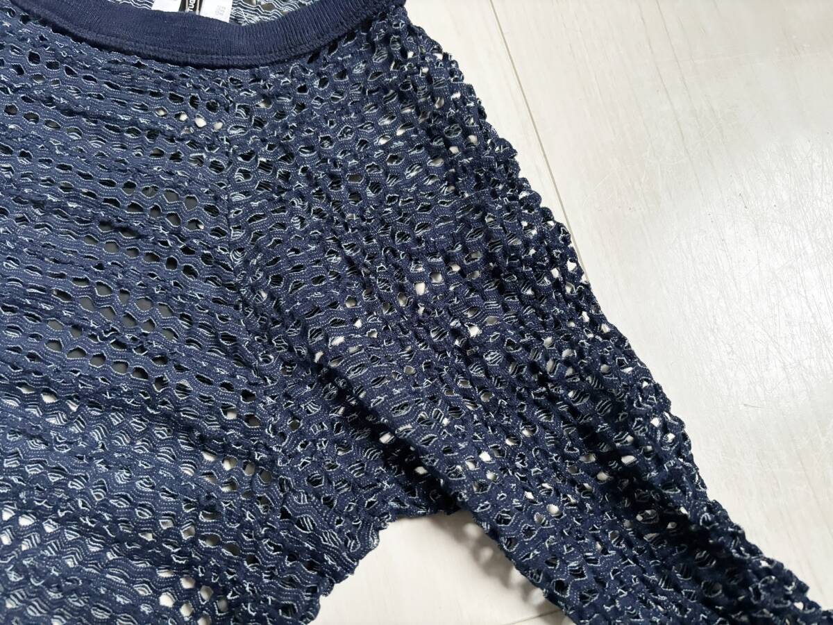 新品 ISABEL MARANTイザベルマラン カットソー ロング メッシュ インディゴ ストレッチ リブ 長袖 0 青 ブルー レディース ポルトガル製△4