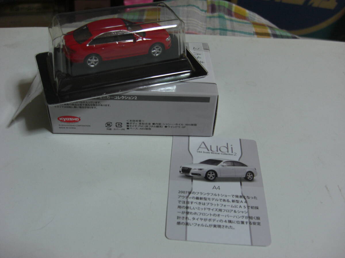 京商 1/64 アウディ・ミニカーコレクション2/2.A4 赤。外箱は、中身確認のため、開封済みです。ブリスター未開封、説明カードあり。落札後はノークレーム・ノーリターンで御願いします。発送は定形外郵便もしくはゆうパックで対応させて戴きます。