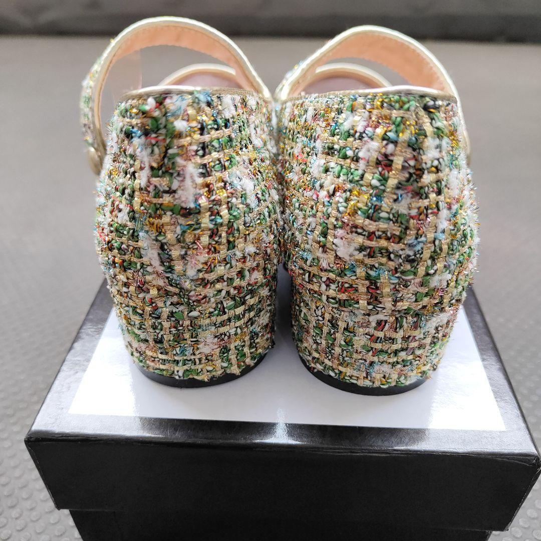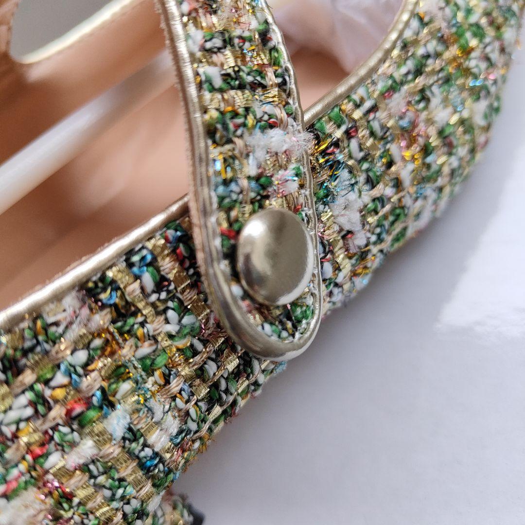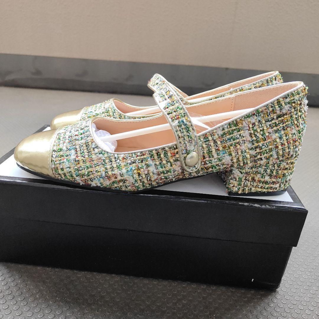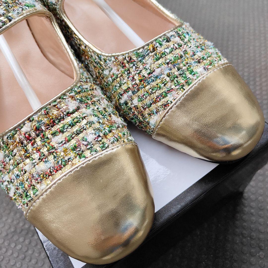 ネップツイードパンプス 24.5cm ゴールド ストラップパンプス ヒール3.5