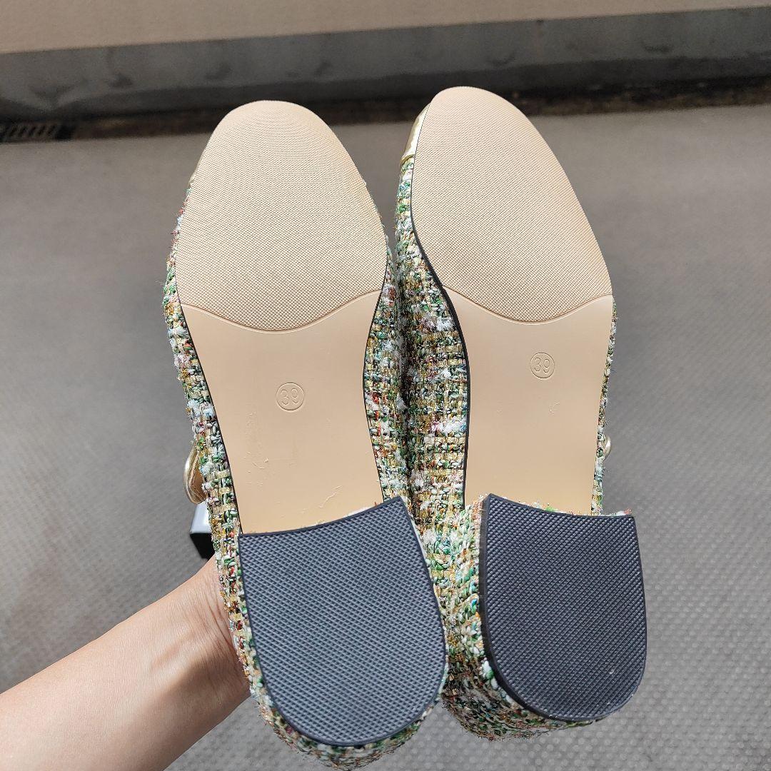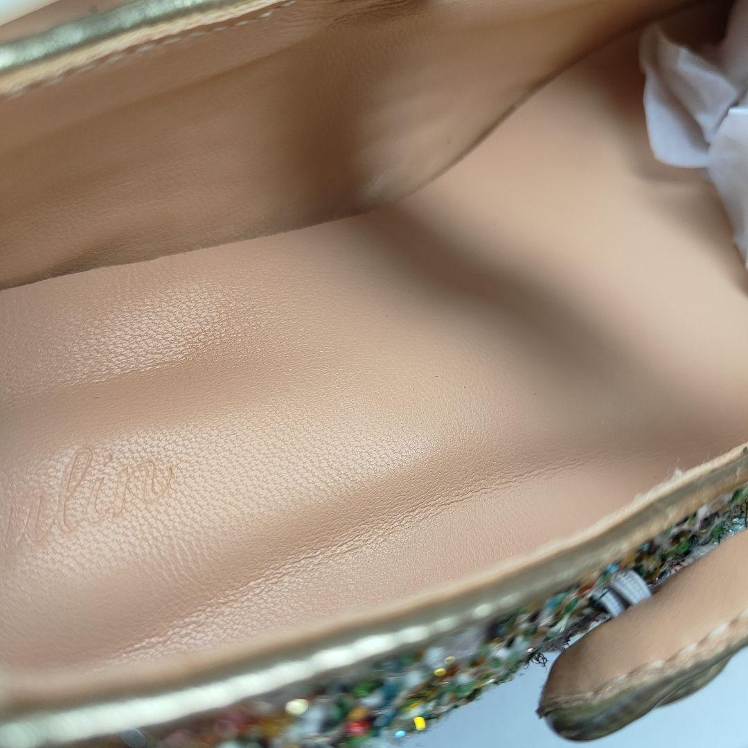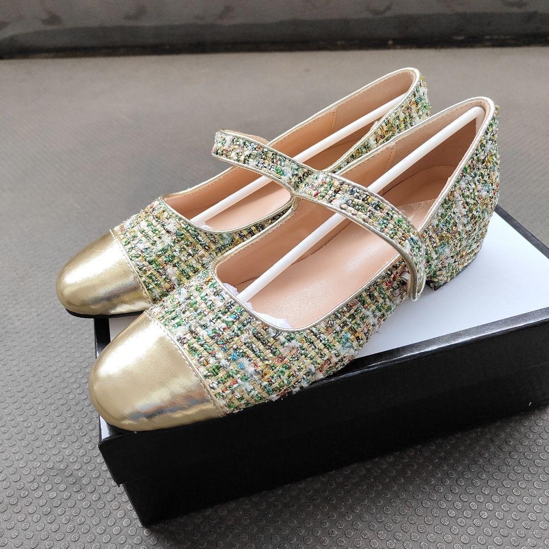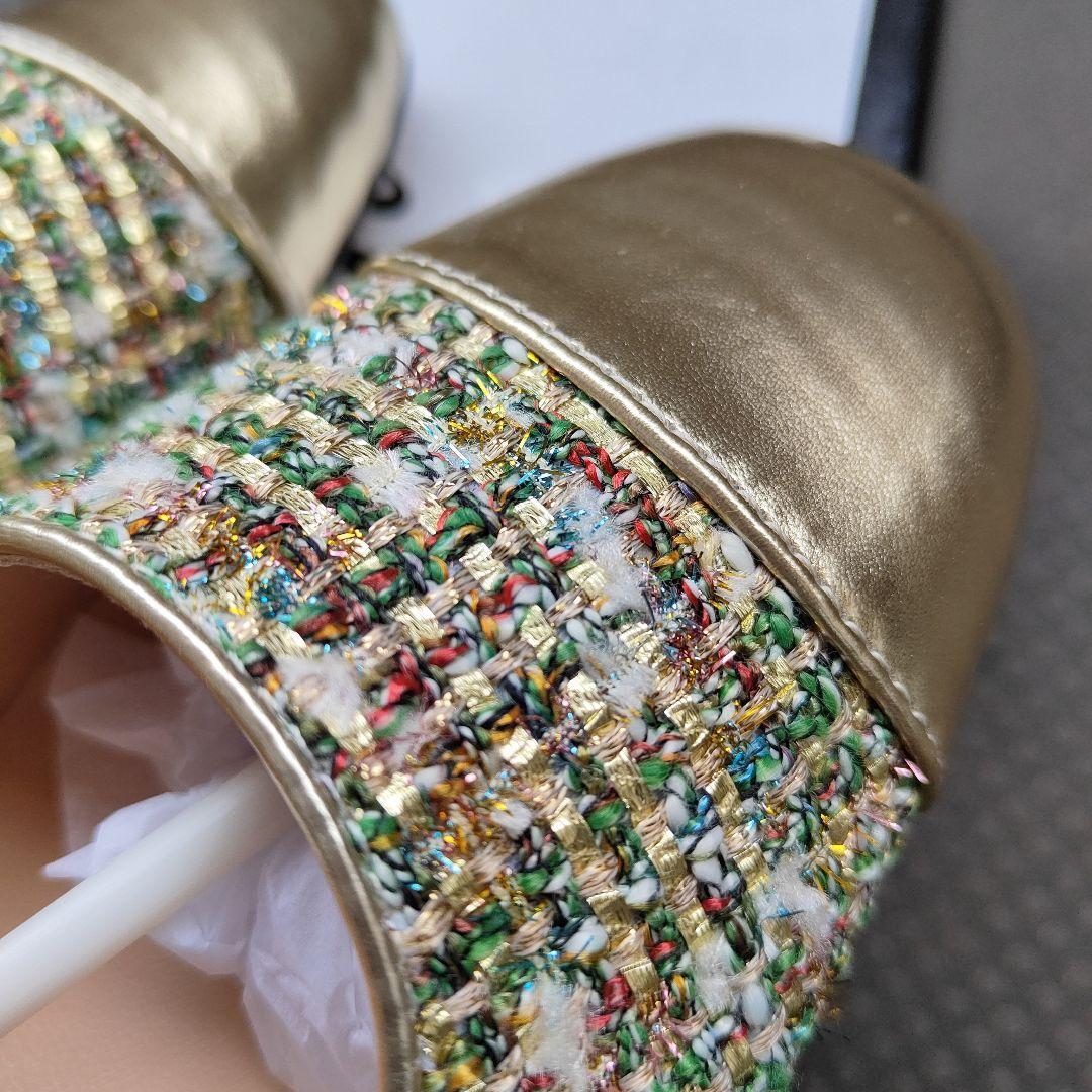 ネップツイードパンプス 24.5cm ゴールド ストラップパンプス ヒール3.5