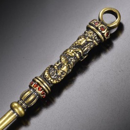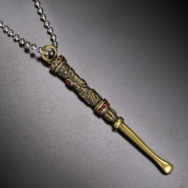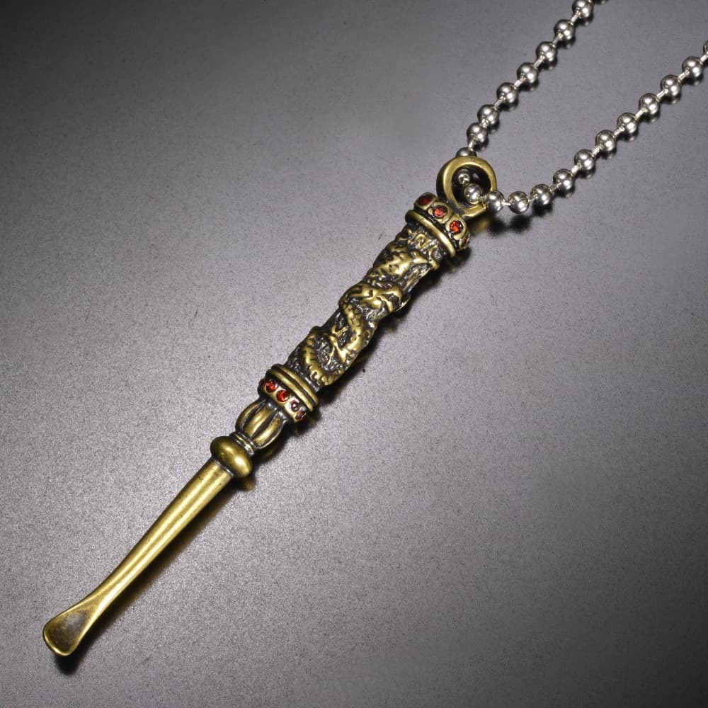 上部はドラゴンの柱をかたどり、先端は耳かき形状をしたユニークなペンダントトップです。