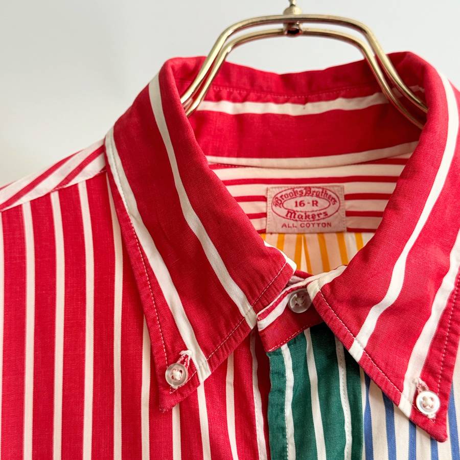 希少《 Crazy / 6 Button / 16-R 》50s 60s 美品【 Brooks Brothers 6ボタン クレイジー ストライプ BDシャツ ビンテージ アメリカ製】