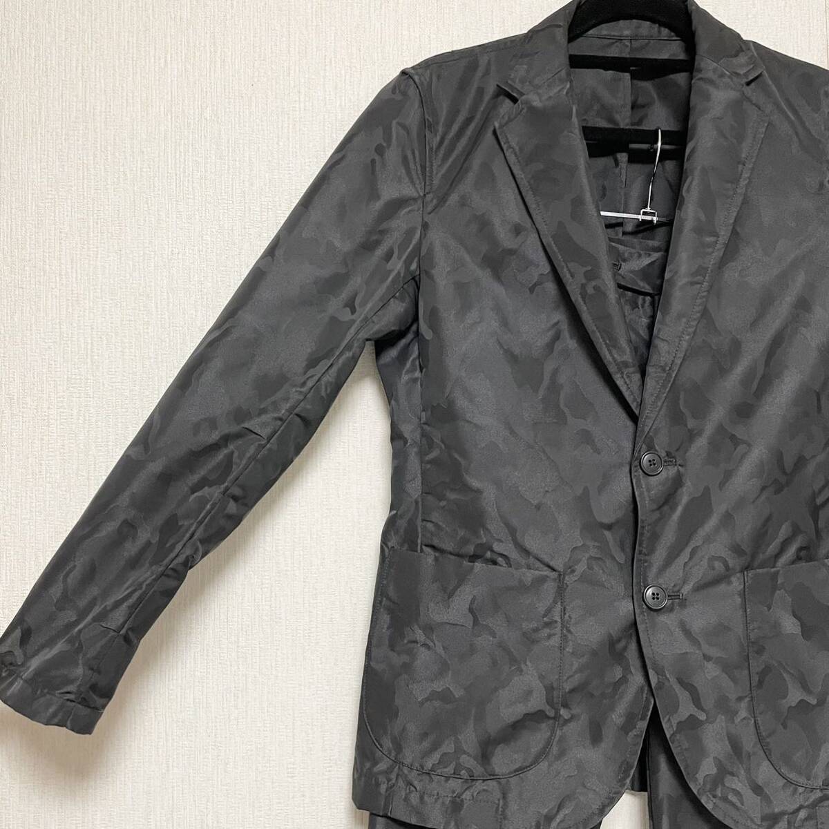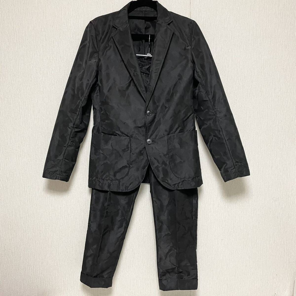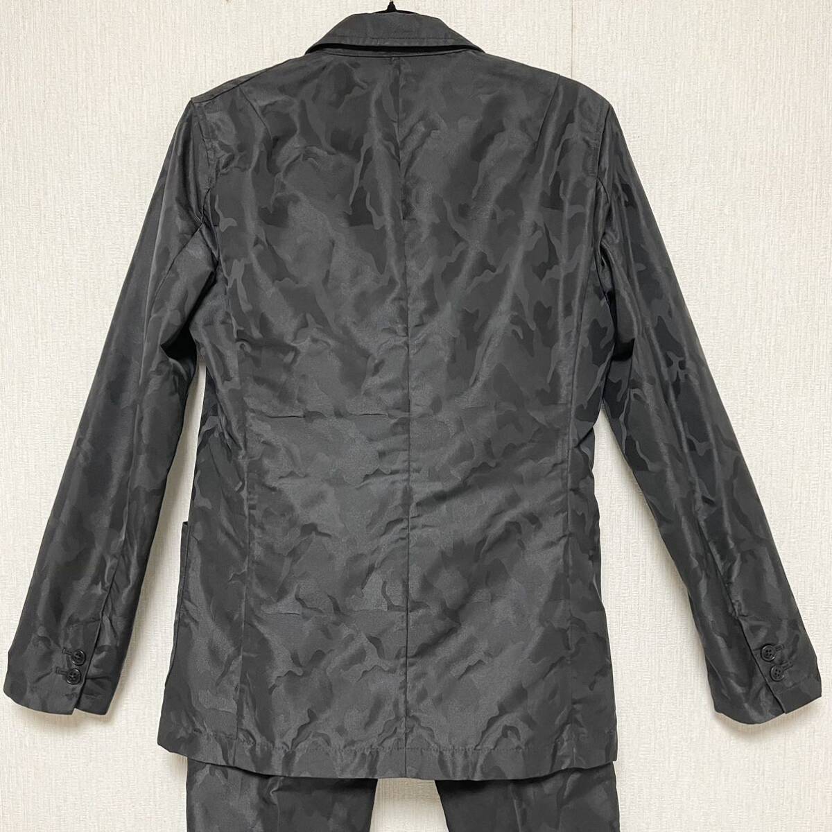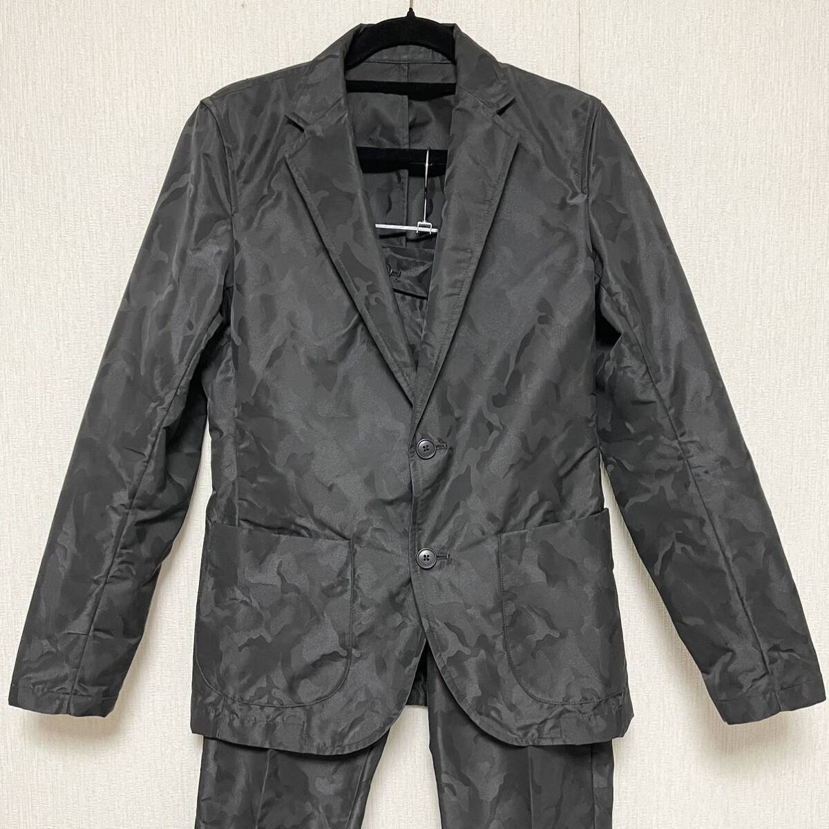 即決★PLST プラステ セットアップ 迷彩 スーツ 光沢 ブラック 美品 希少 レア ジャケット S パンツ