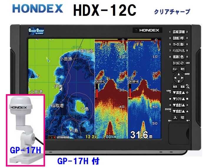 | 在庫あり HDX-12C 600W 外アンテナ GP-17H付 振動子 TD320 クリアチャープ魚探搭載 12.1型 GPS魚探 HONDEX ホンデックス | |||
