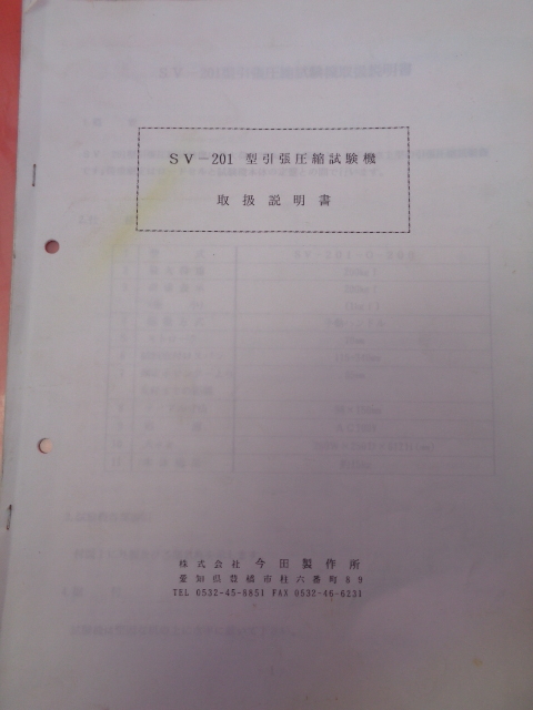 引張圧縮試験機 SV-55型 今田製作所(銘板だけ201に変わっています) ですので実際のピークのMax約55kgf/m㎡とお考え下さい