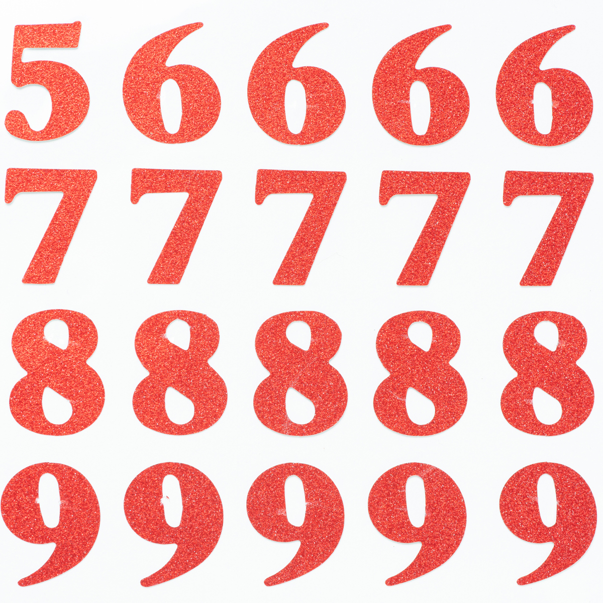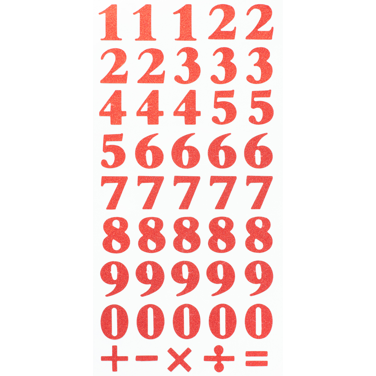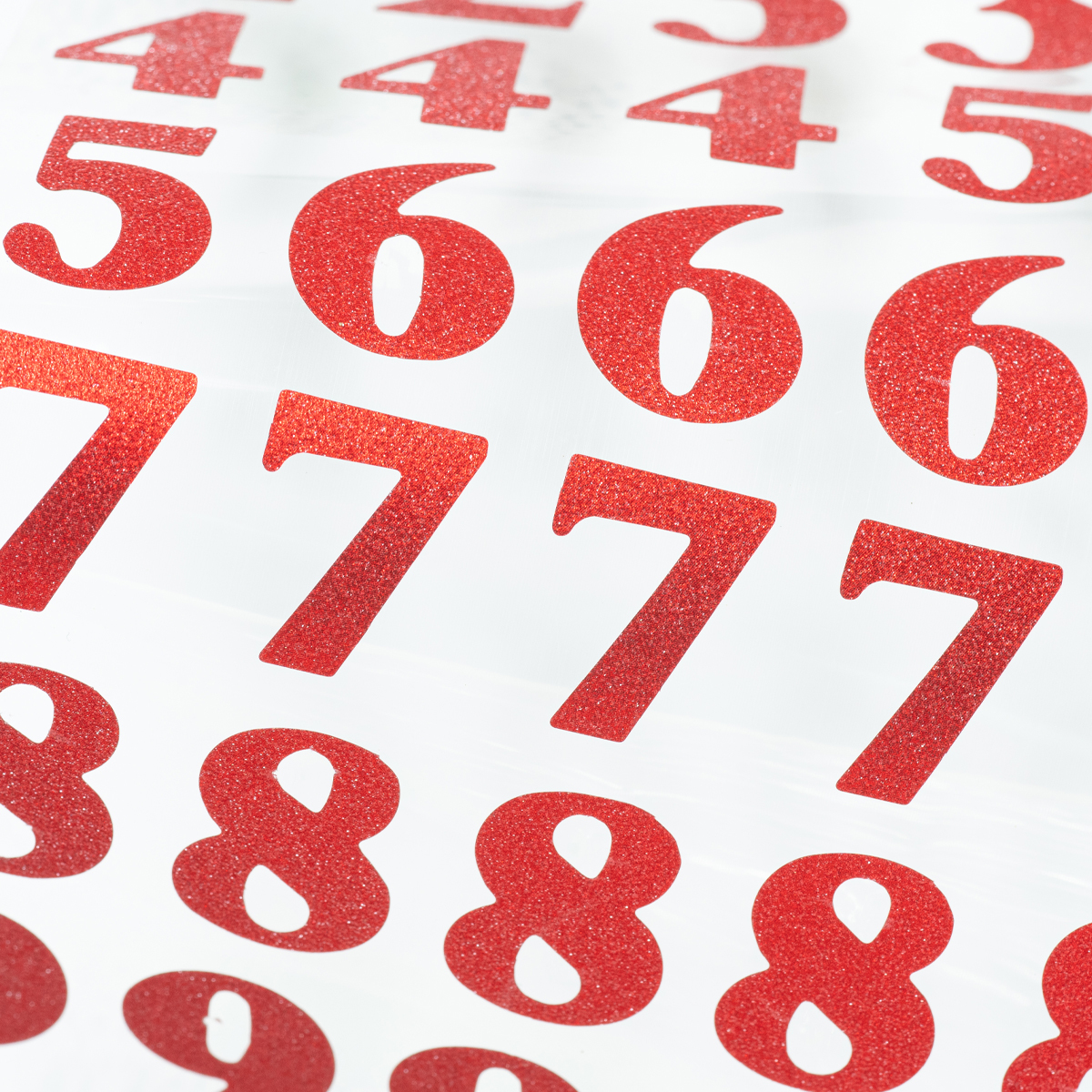 赤色 レッド にラメ加工を施した数字のステッカーセットです。