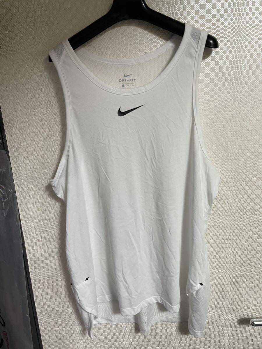 ナイキのタンクトップです。サイズ X L表記で平置き脇下身幅58着丈74センチ位です。