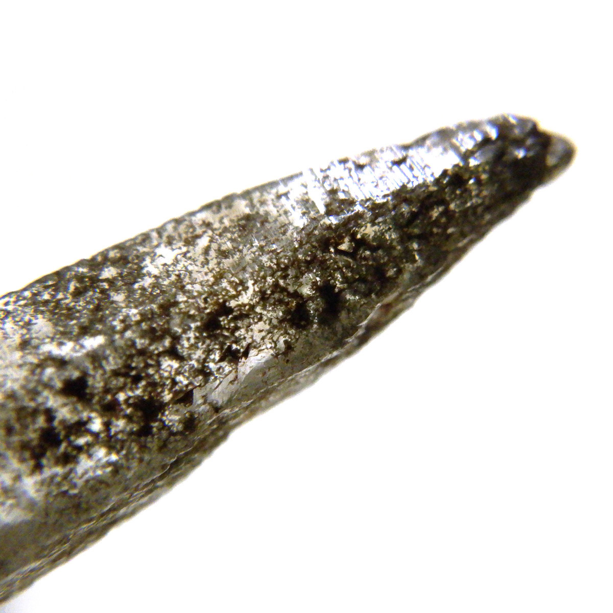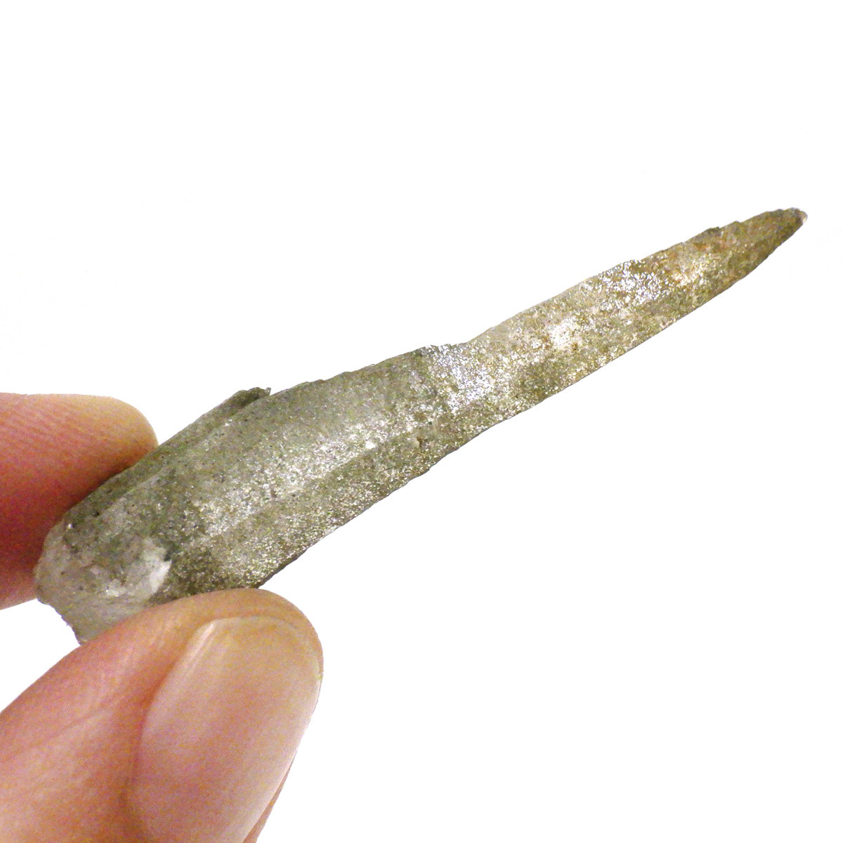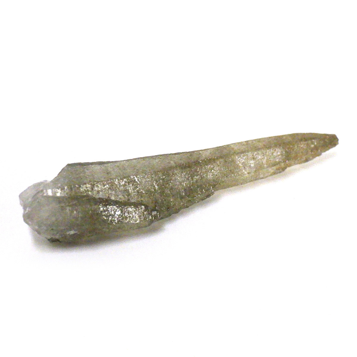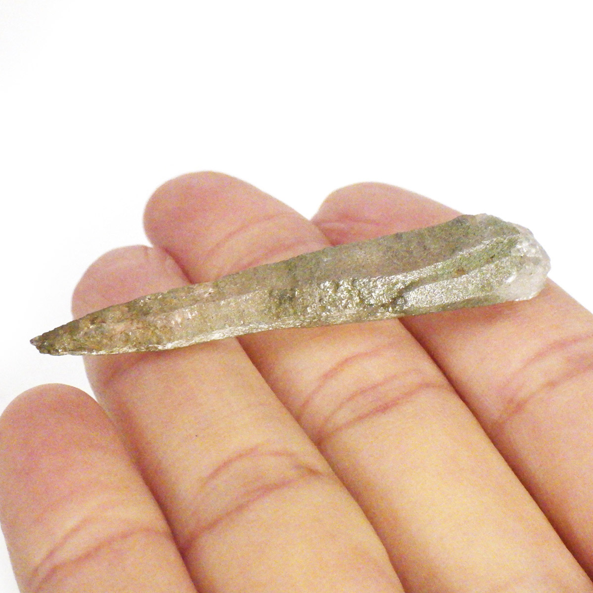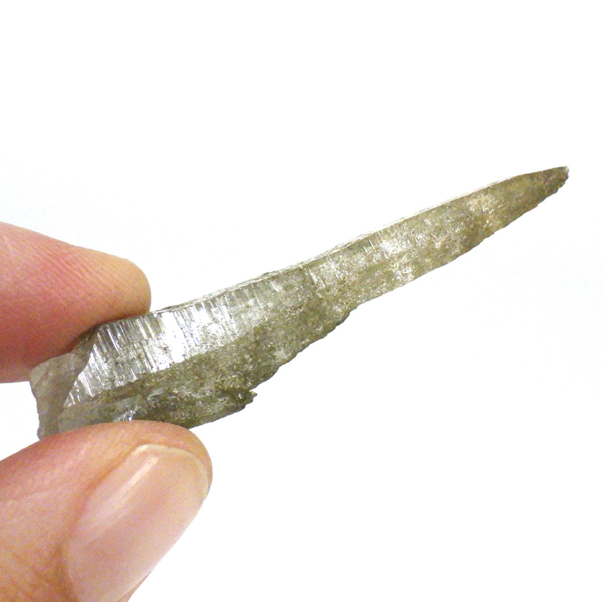 ネパールのガネーシュヒマール産水晶は「ぬめり」と表現される、水にぬれたような独特な光沢が特長です。ガネーシュヒマールとは、ネパール東端に位置する山の名前です。透明度も大変高く、クッキリと背景が透けて見えます。表面にはバーコード状の成長線が入っています。透明の結晶は本当に美しいです。エッジの効いたシャープな姿も魅力的です。