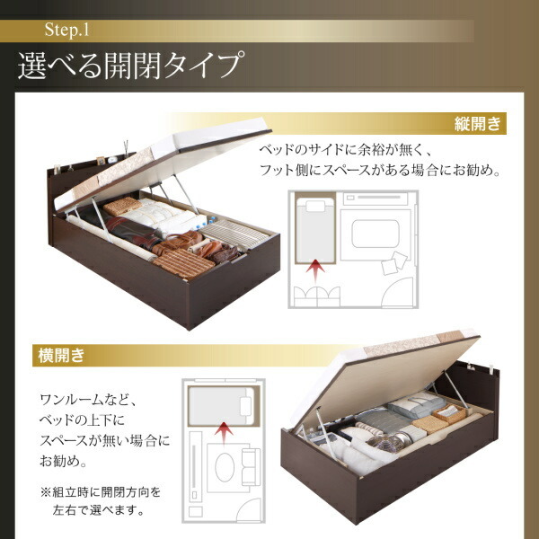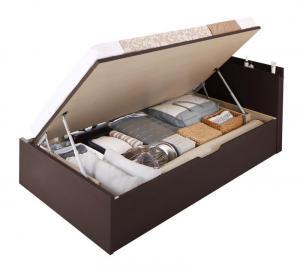 お客様組立 国産跳ね上げ収納ベッド ダークブラウン 薄型抗菌国産ポケットコイルマットレス付き 横開き セミシングル 深さラージ