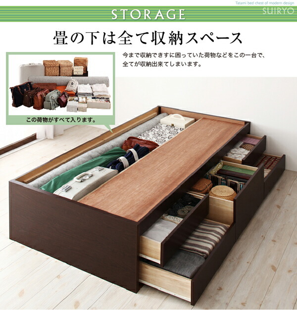 お客様組立 シンプルモダン畳チェストベッド 国産畳 ベッドガードなし セミダブル