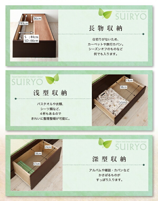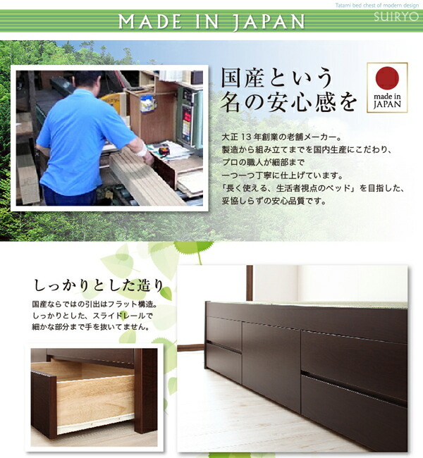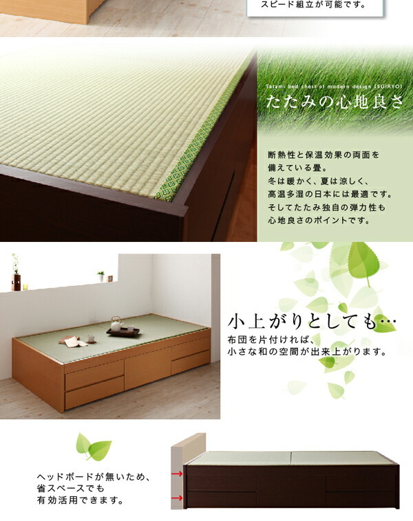 お客様組立 シンプルモダン畳チェストベッド 翠緑 すいりょ 国産畳 ベッドガードなし セミダブル【カラー:ナチュラル】です。