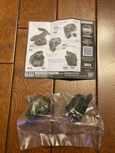バンダイから発売のいきもの大図鑑ミニコレクション 両生類全5種のうち「オキナワイシカワガエル」です。500円ガチャらしく、とてもリアルに出来上がっています。リスト付きです。破損防止のためカプセル入りで送付します。