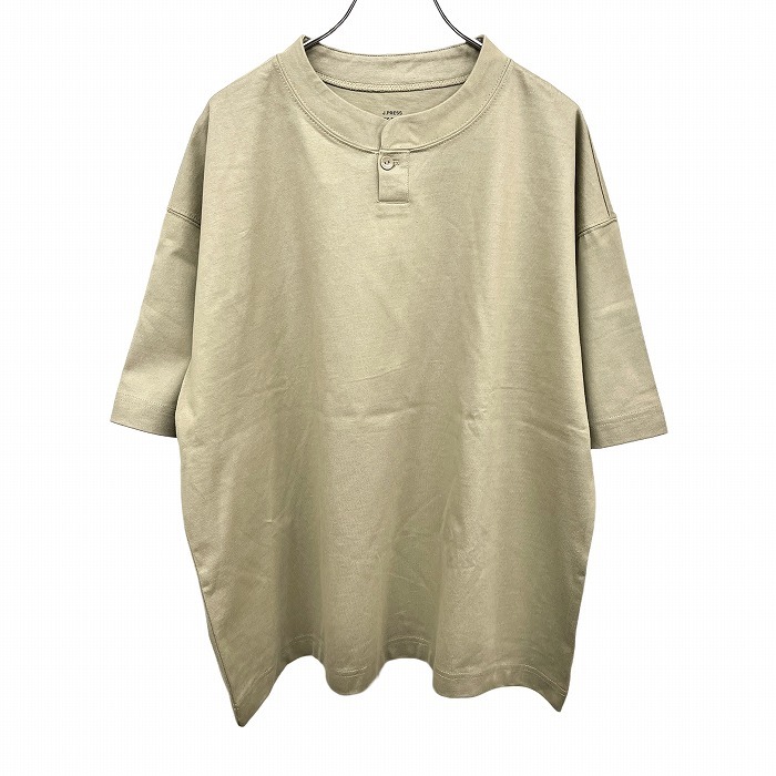 商品タイトル | ジェイプレス J.PRESS YORK STREET Tシャツ ビッグシルエットヘンリーネック 無地 5分袖 綿100% S グリーンベージュ カーキ系 メンズ |