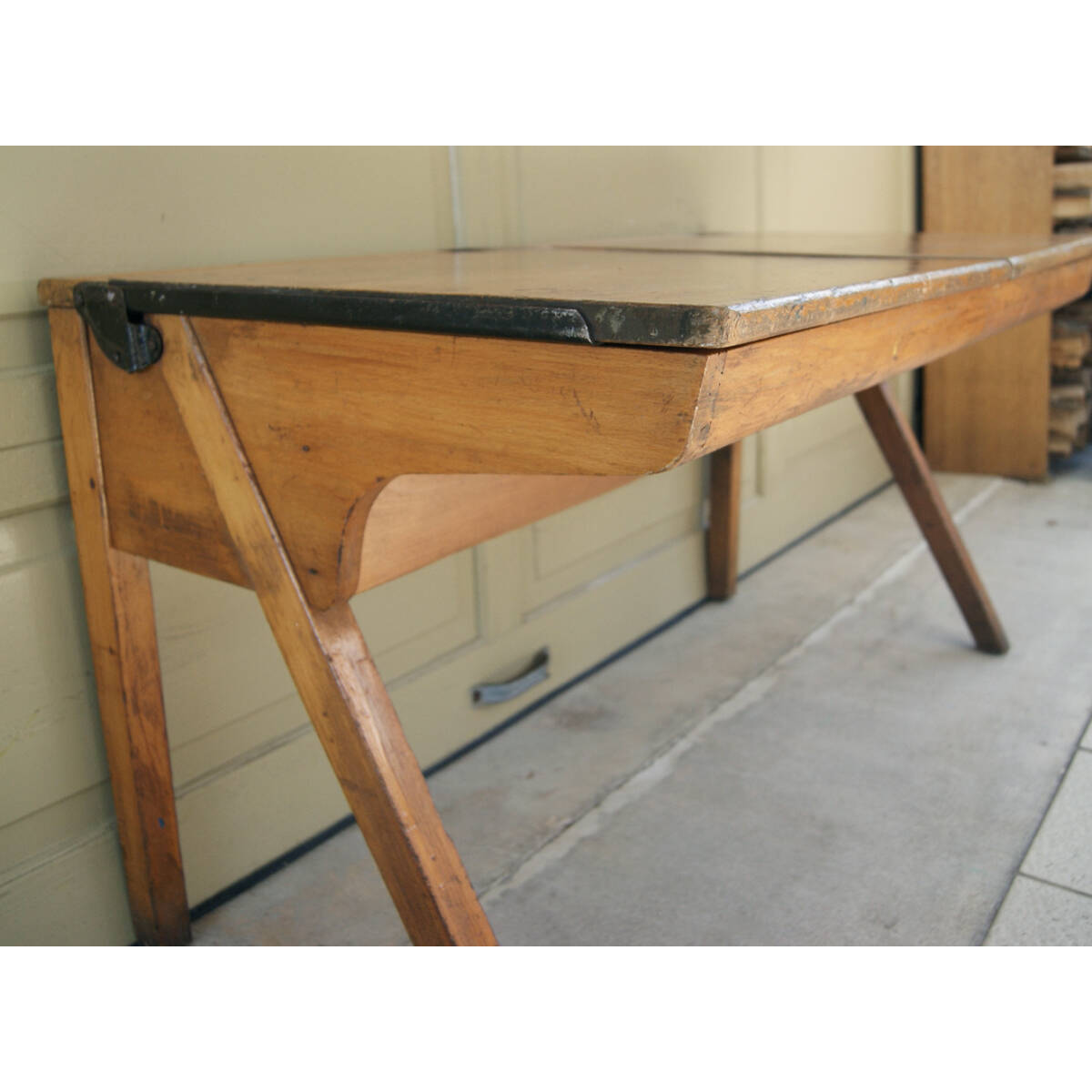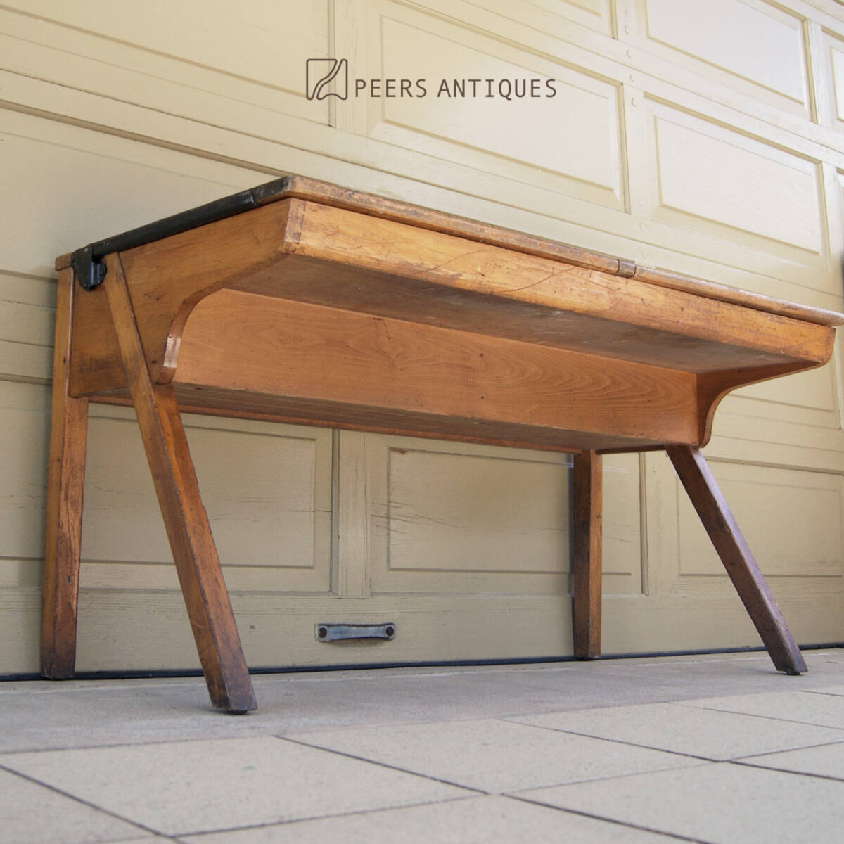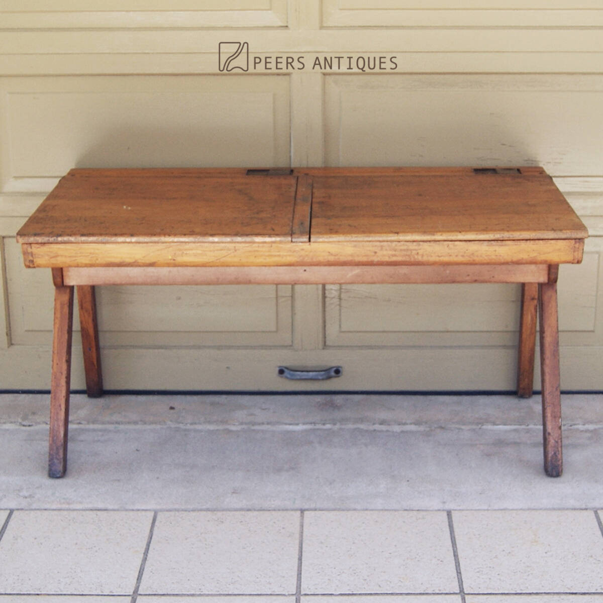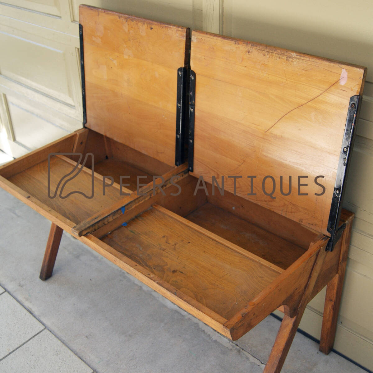 4445t18【イギリス 英国 アンティーク☆古い 木製 2人掛け スクールデスク 学校机】ローテーブル 飾台 展示台 ヴィンテージ 希少 レア◎