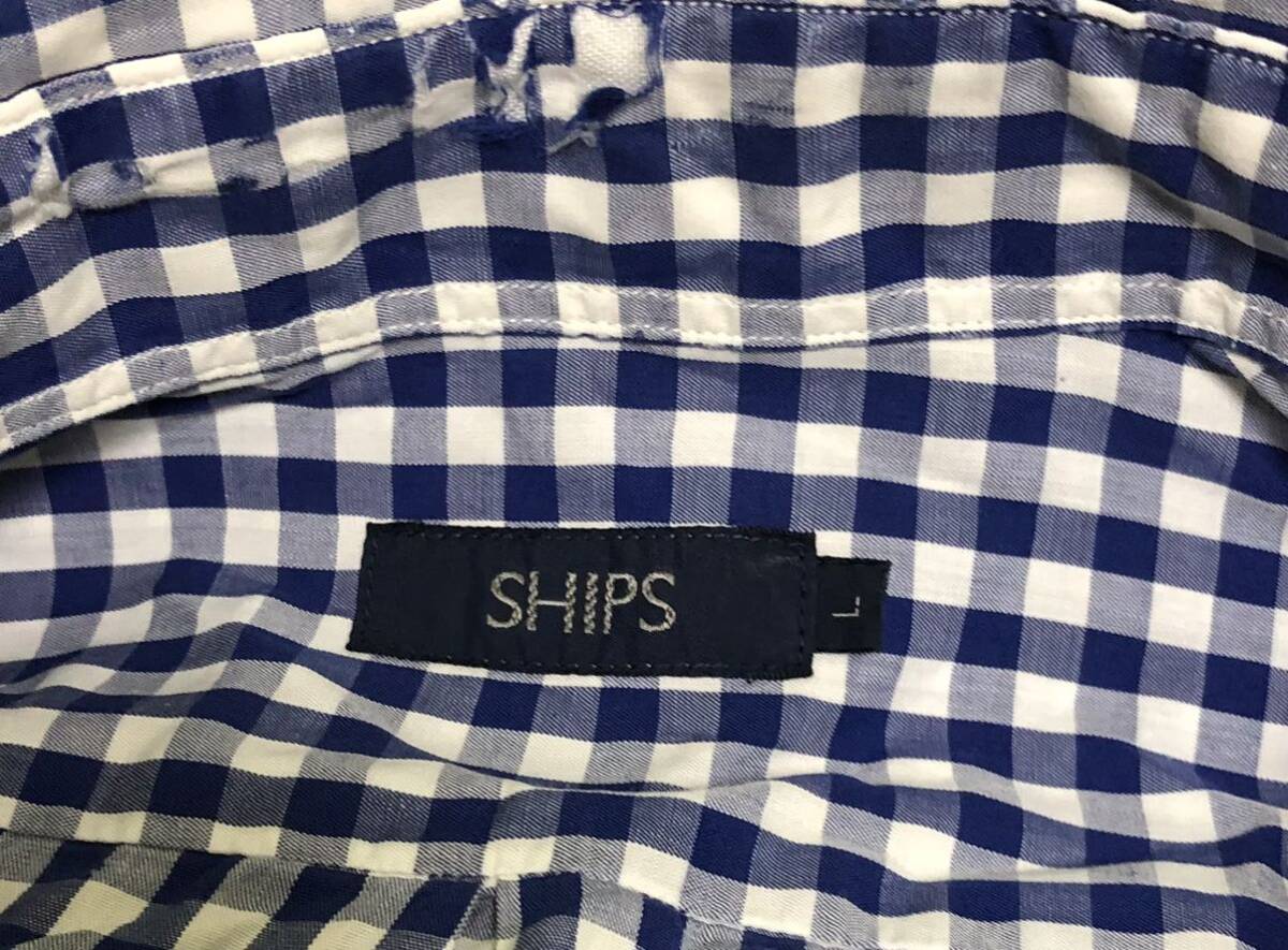 シッブスSHIPSギンガムチェックボタンダウンシャツ BD Lサイズ コットン USED難あり