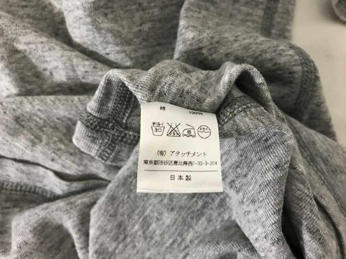 商品名:本物アタッチメントATTACHMENTコットン7部丈長袖TシャツロンTメンズサーフアメカジミリタリーモードスーツグレー1S日本製インナー