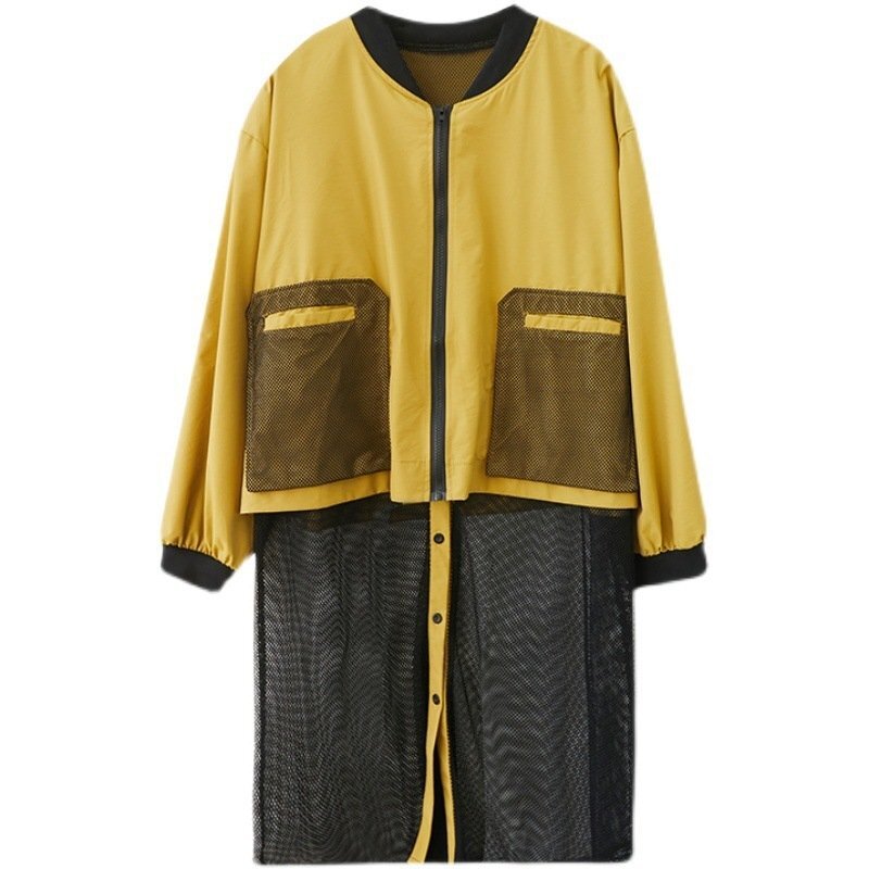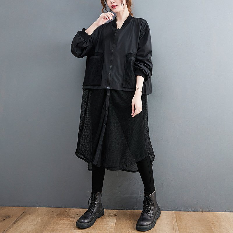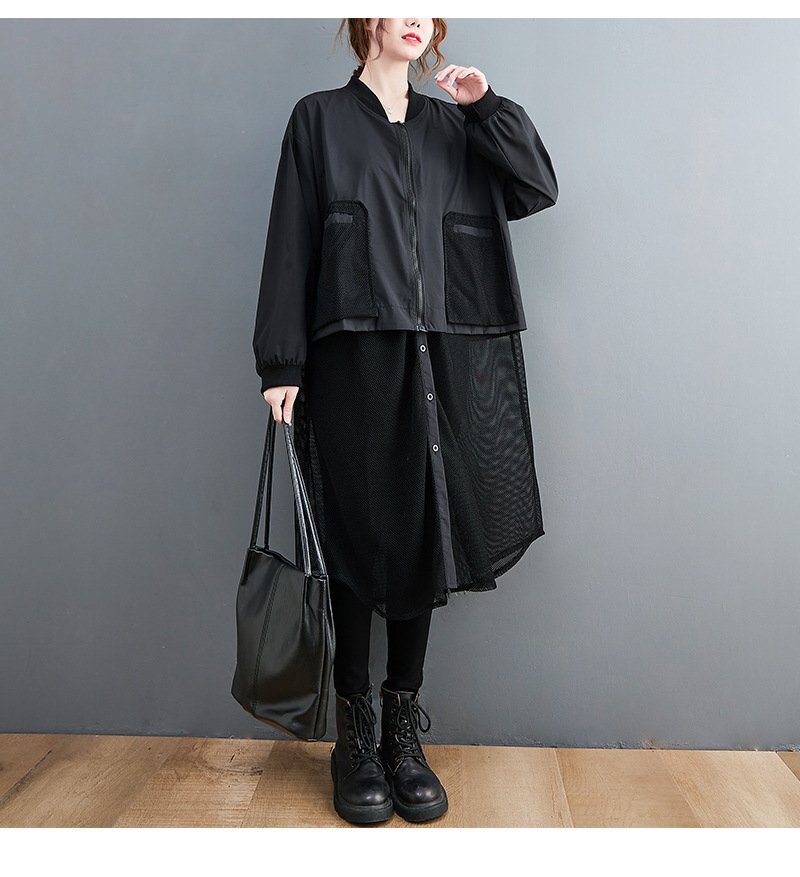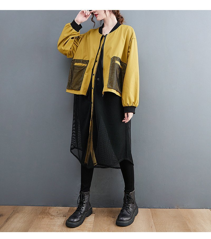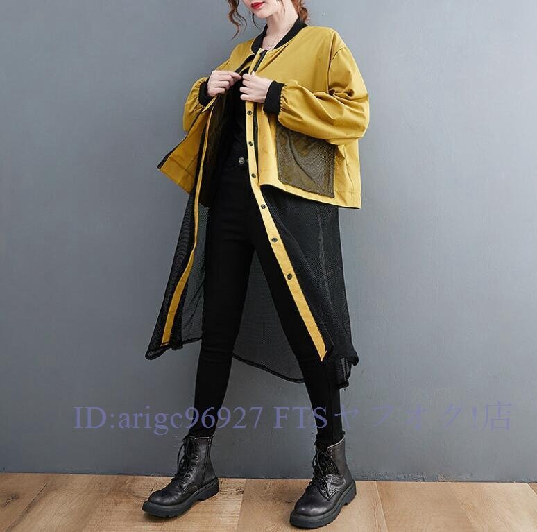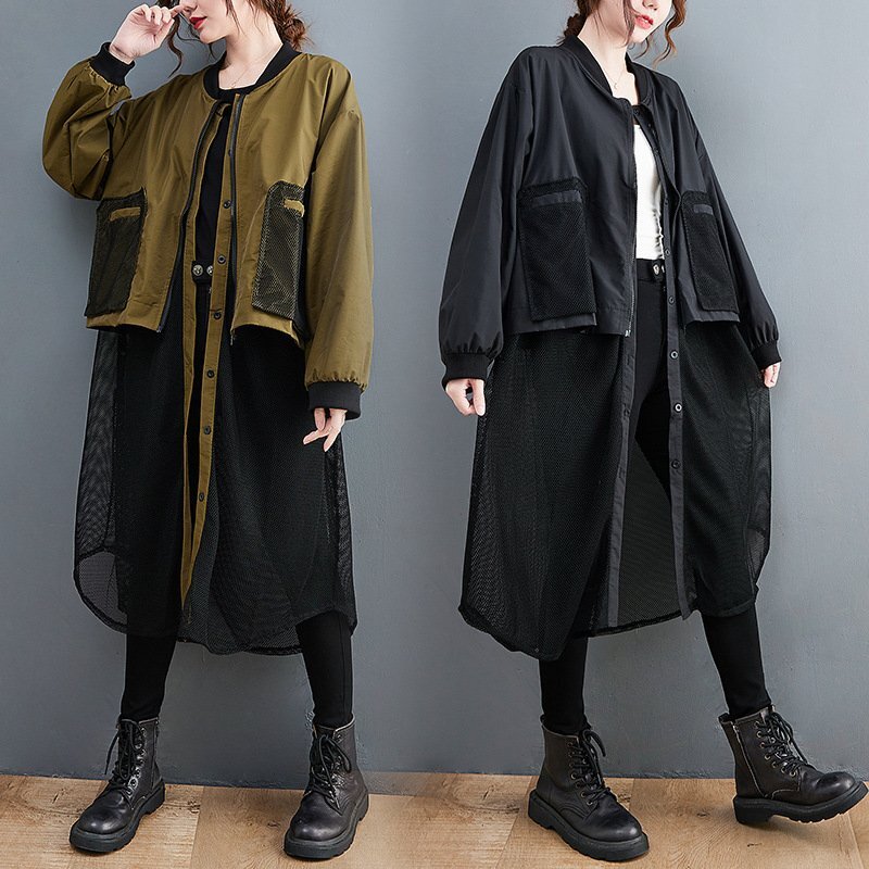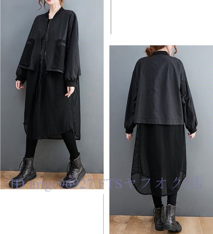 B0632☆新品春カジュアル 体型カバー 重ね着風切り替え 大きいサイズ ロング丈トレンチコートスプリングコートL~XL グリーン