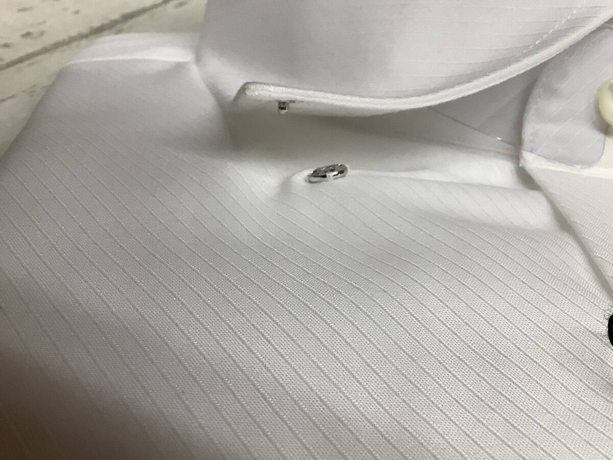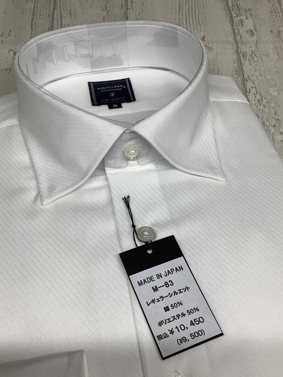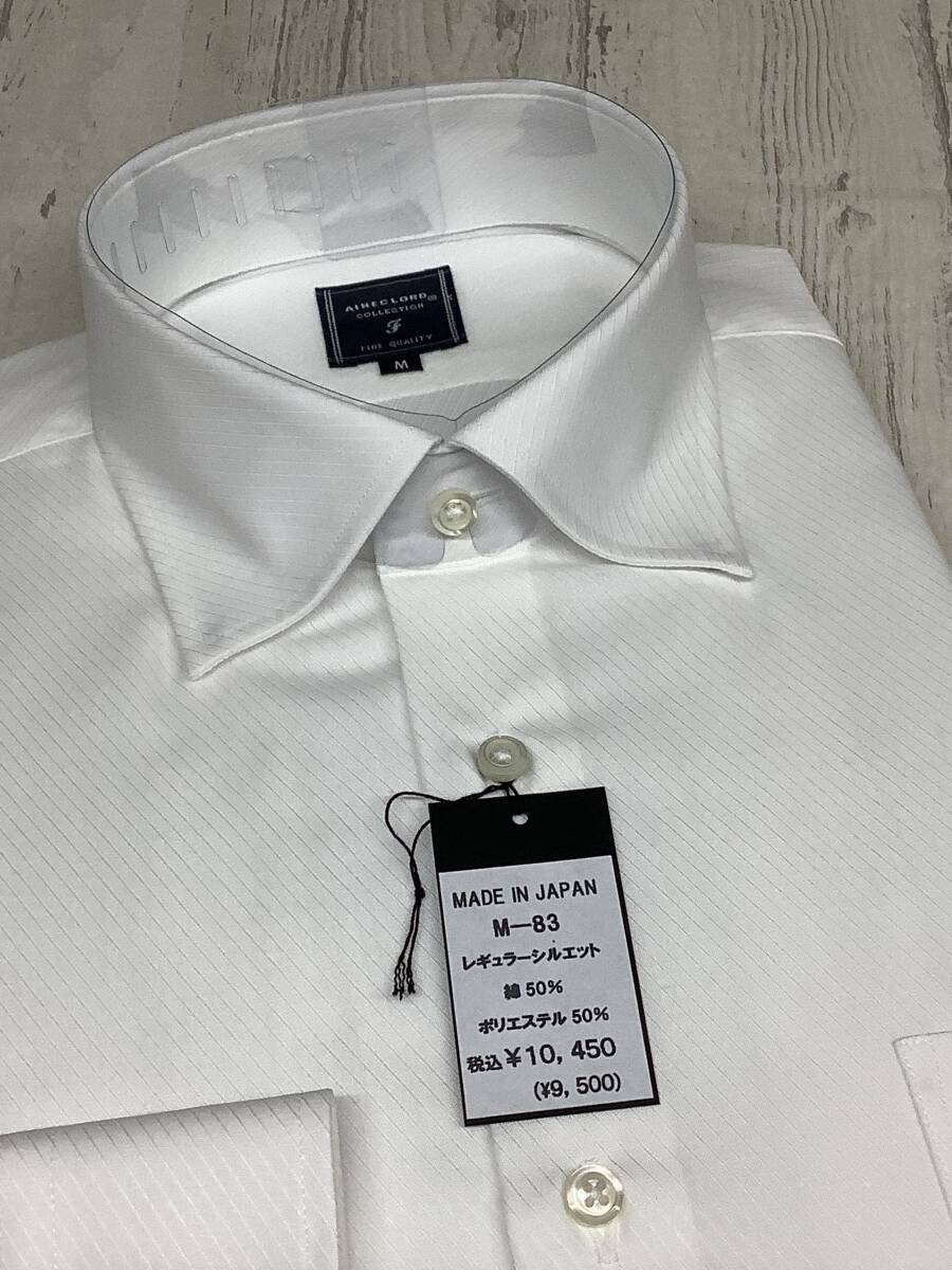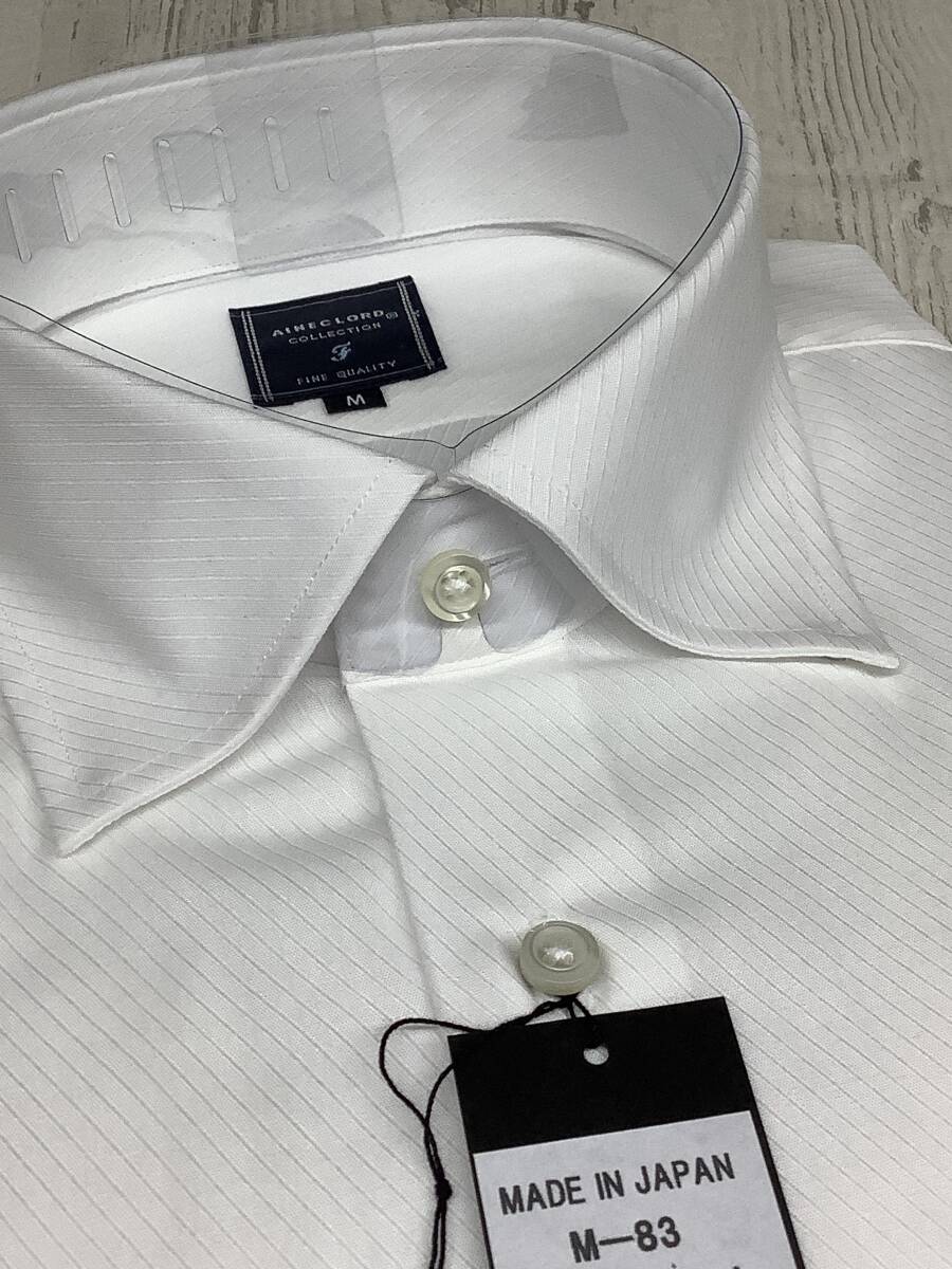 40-83 Mサイズ 新品 白ドビー柄 ワイドカッターシャツ スナップダウン 日本製 高級 形態安定加工 ドレスシャツ  綿ポリ
