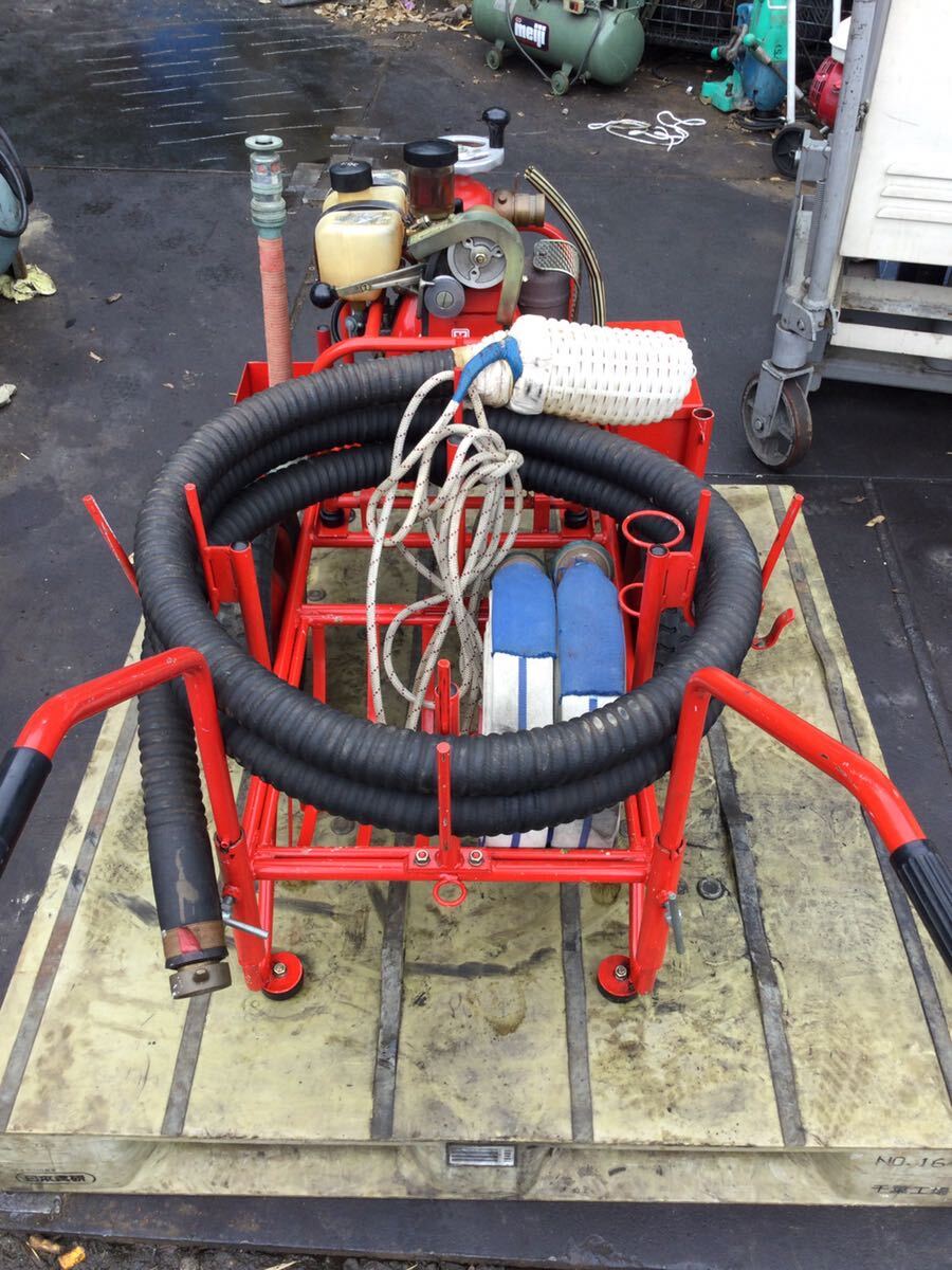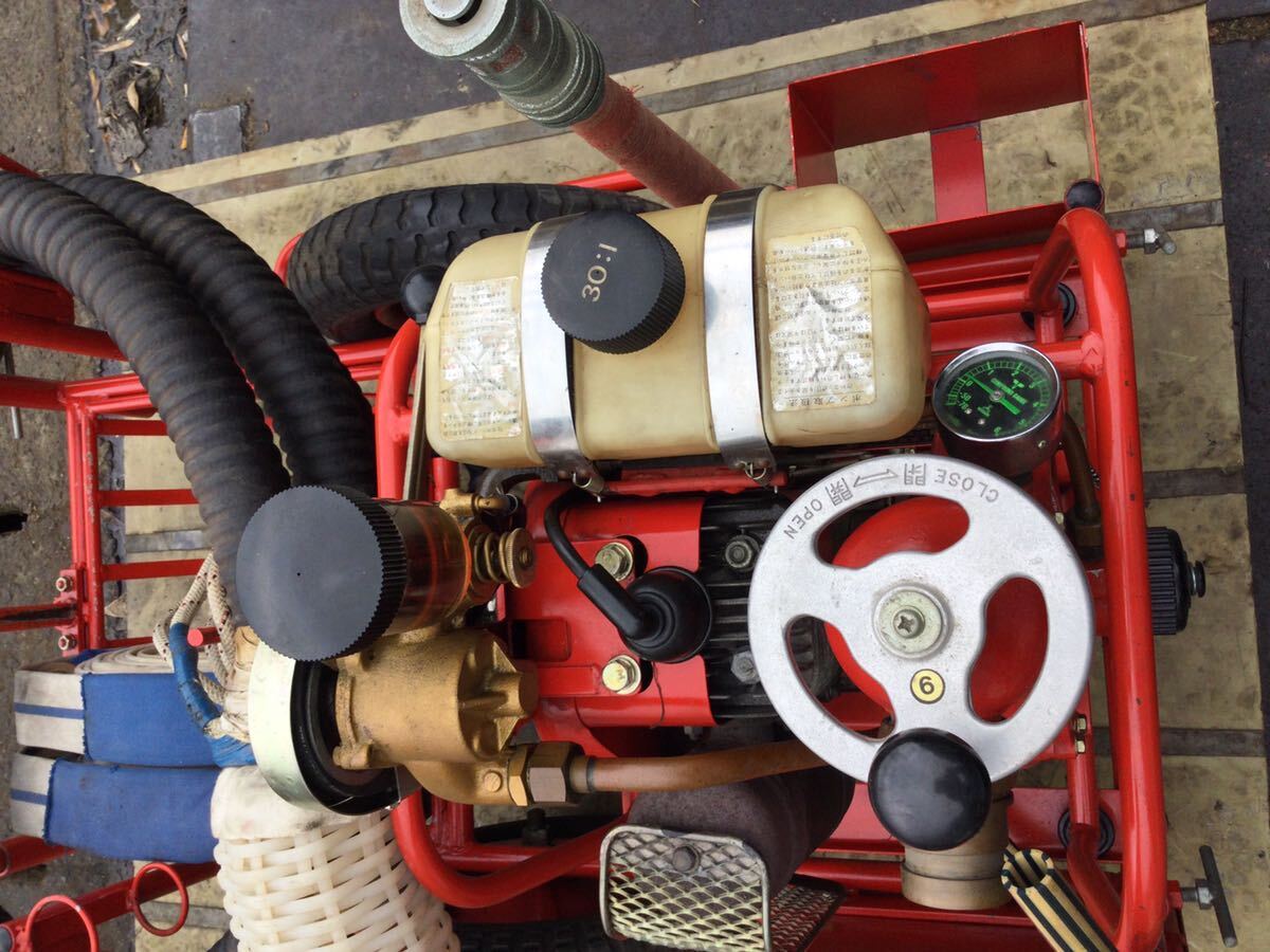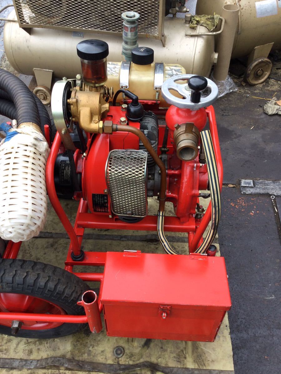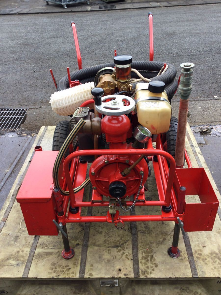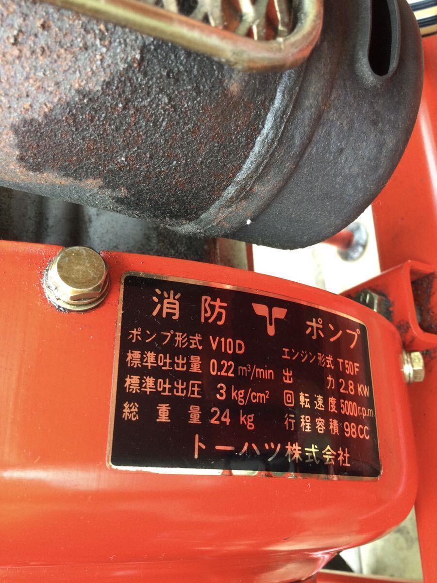 TOHASTU V10D 2ストロークエンジン搭載移動式消防ポンプ、フレキシブルホースと輸送手段付き