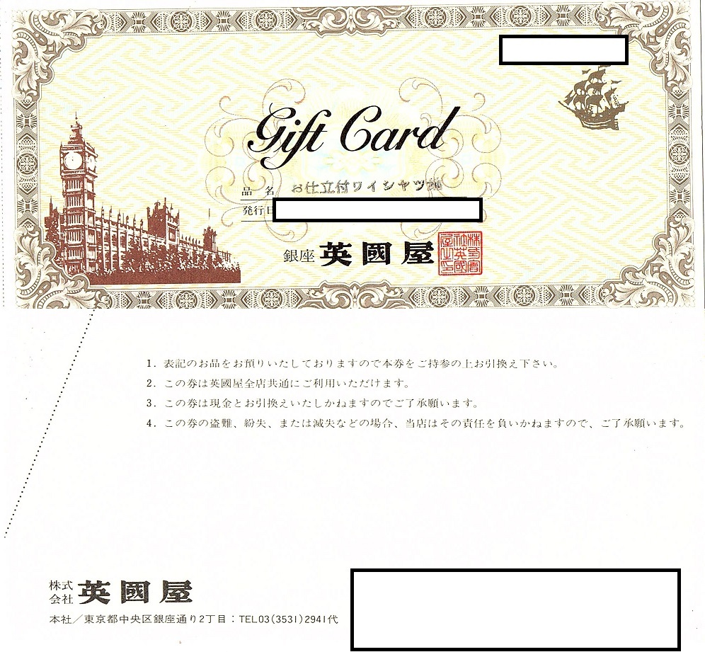 銀座 英國屋 ギフト券 21000円分(20000円+消費税5%相当)期限なし 英国屋