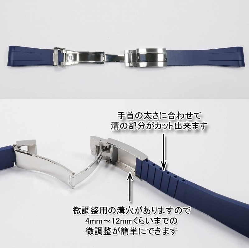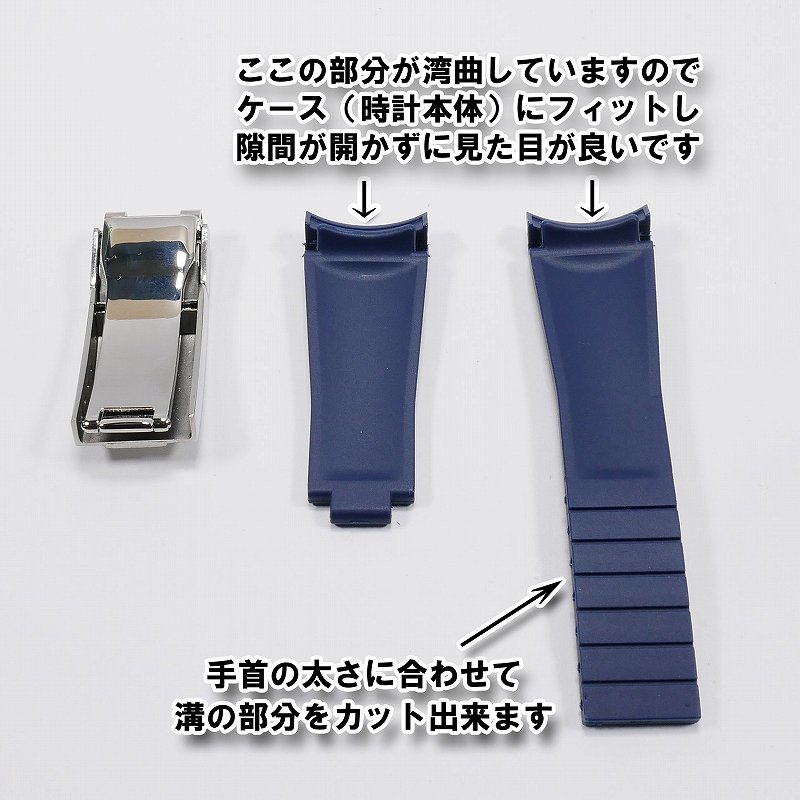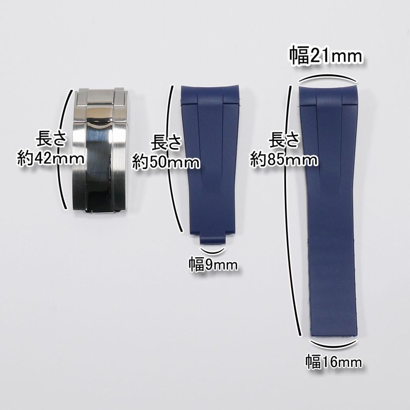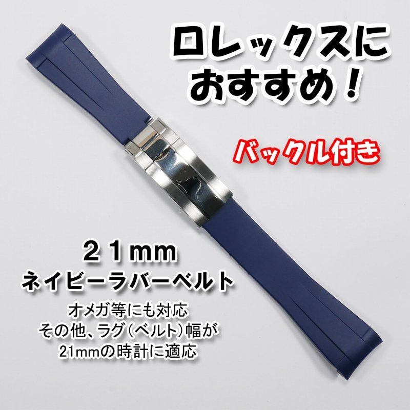ロレックスにおすすめ! バックル付き ラバーベルト 21mm ネイビー オメガにも対応