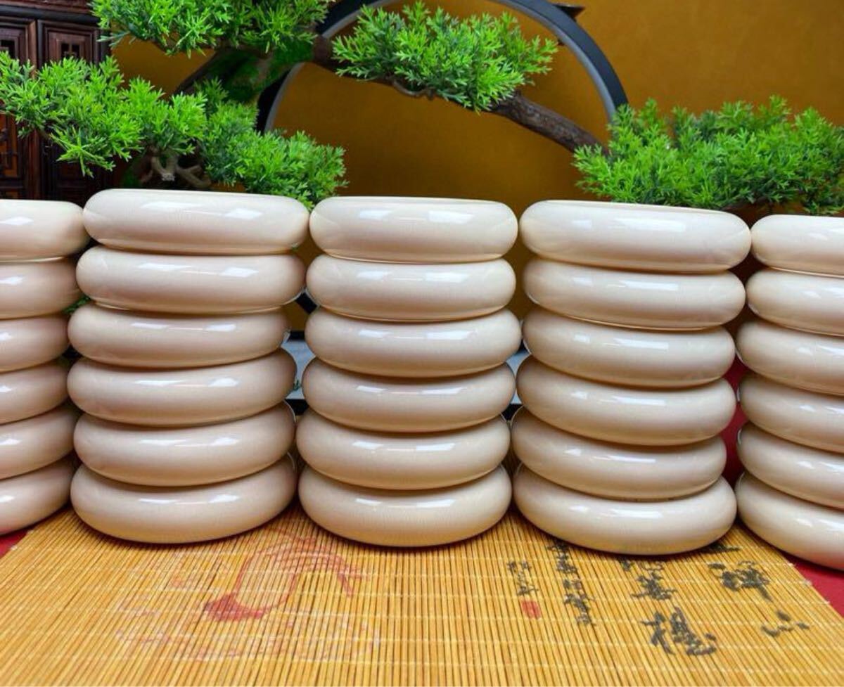 【マンモスのブレスレット】新発売!万年マンモス牙20mm原色ブレスレット、厳選したトップクラスのマンモスゼリー材、潤くて素敵です、牙紋がいっぱいで、模様が繊細ではっきりしています!身につけると気前がいい!贈り物、コレクションに最適。