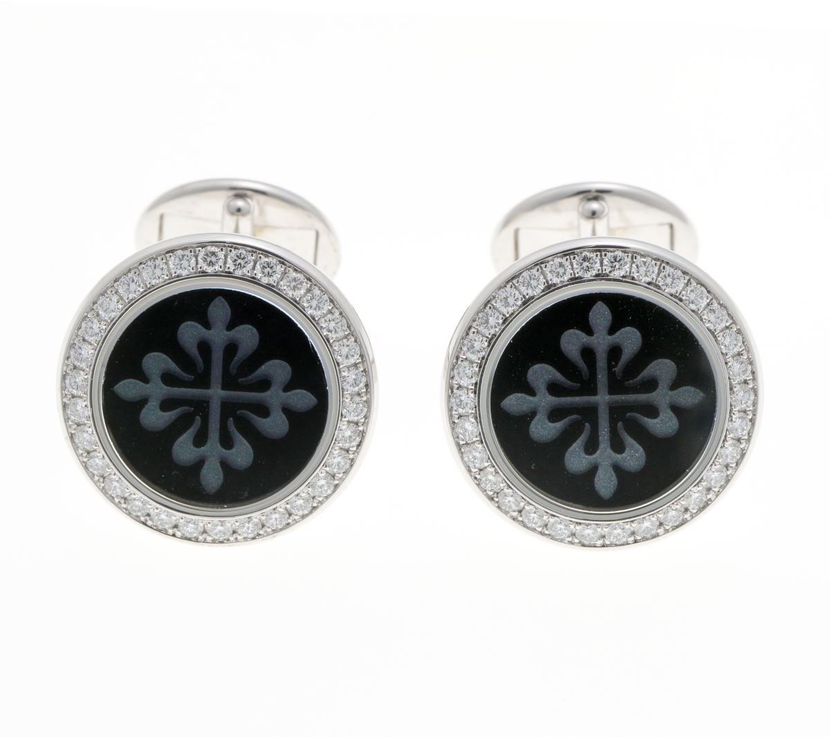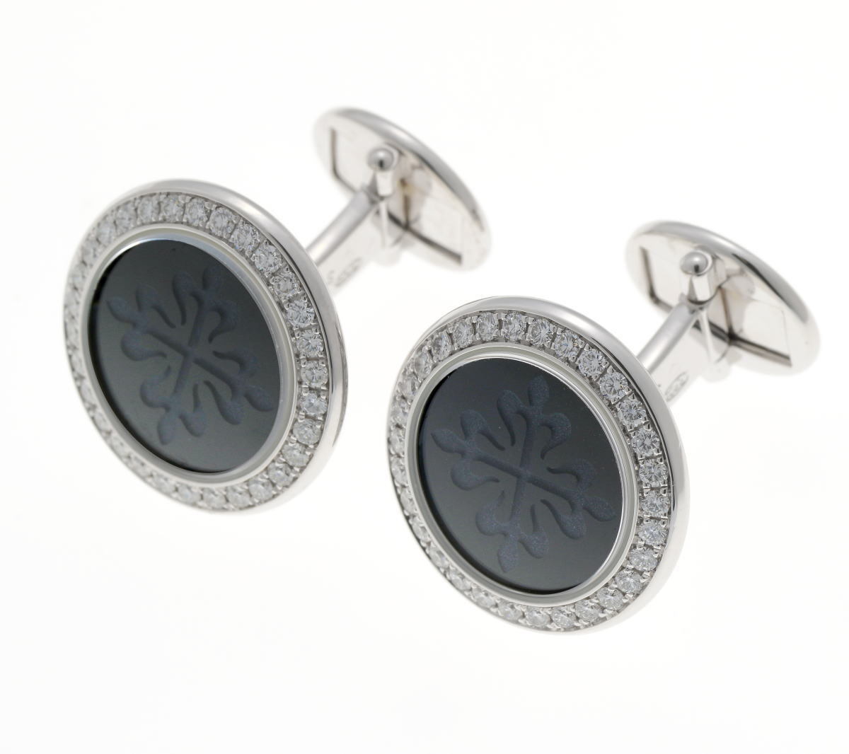 ガラスのコーナーに小傷があります。提携工房にて磨き済み。-ラウンドモチーフのカラトラバ・カフリンクス。