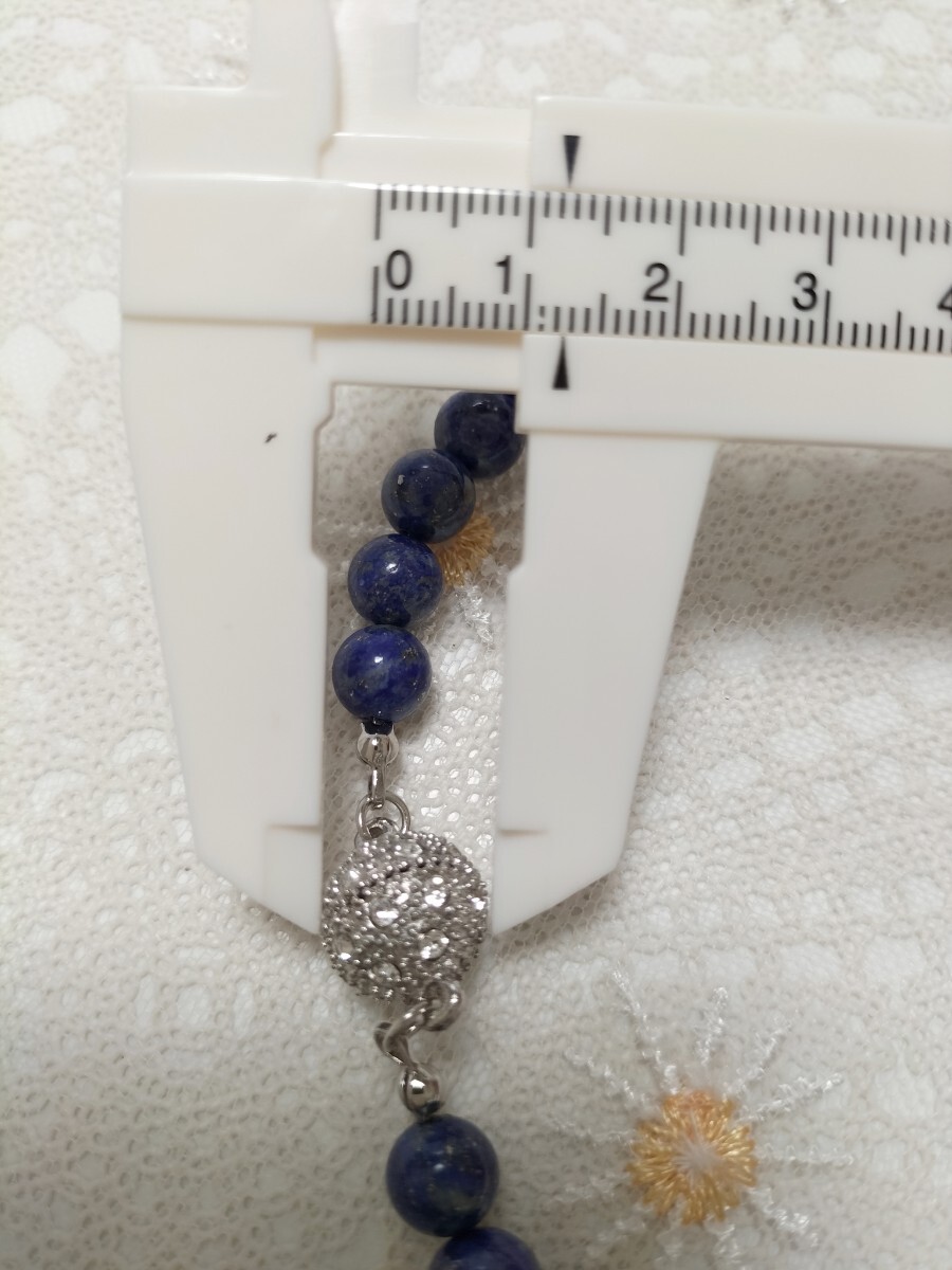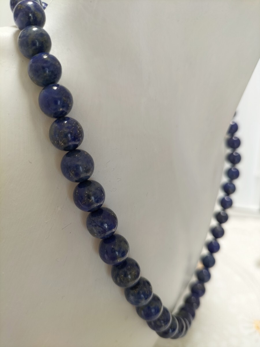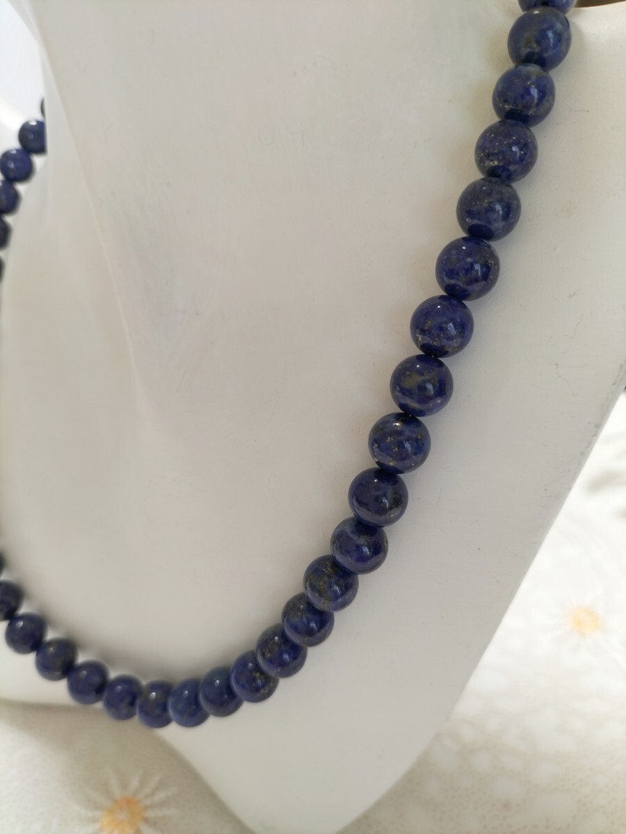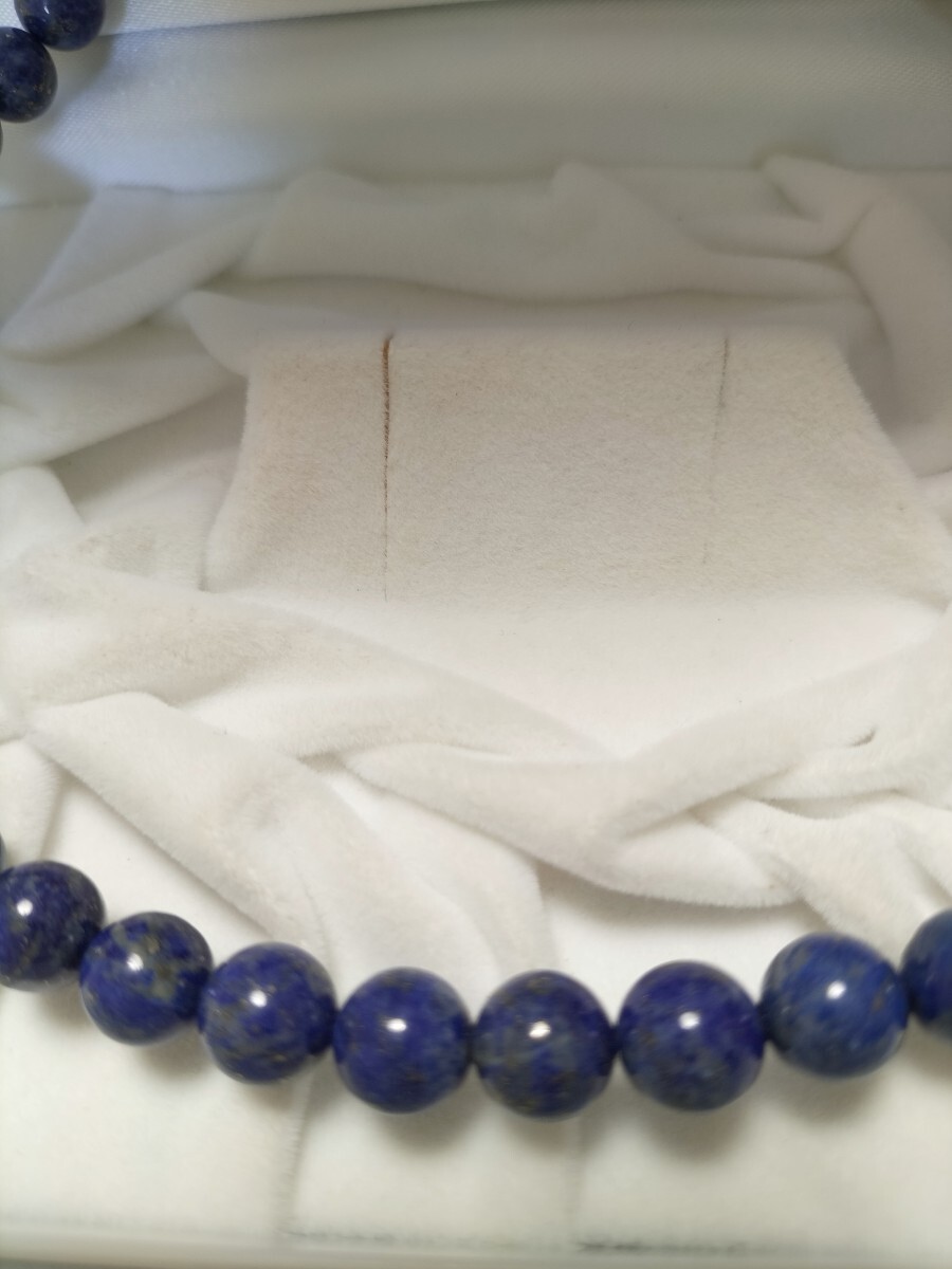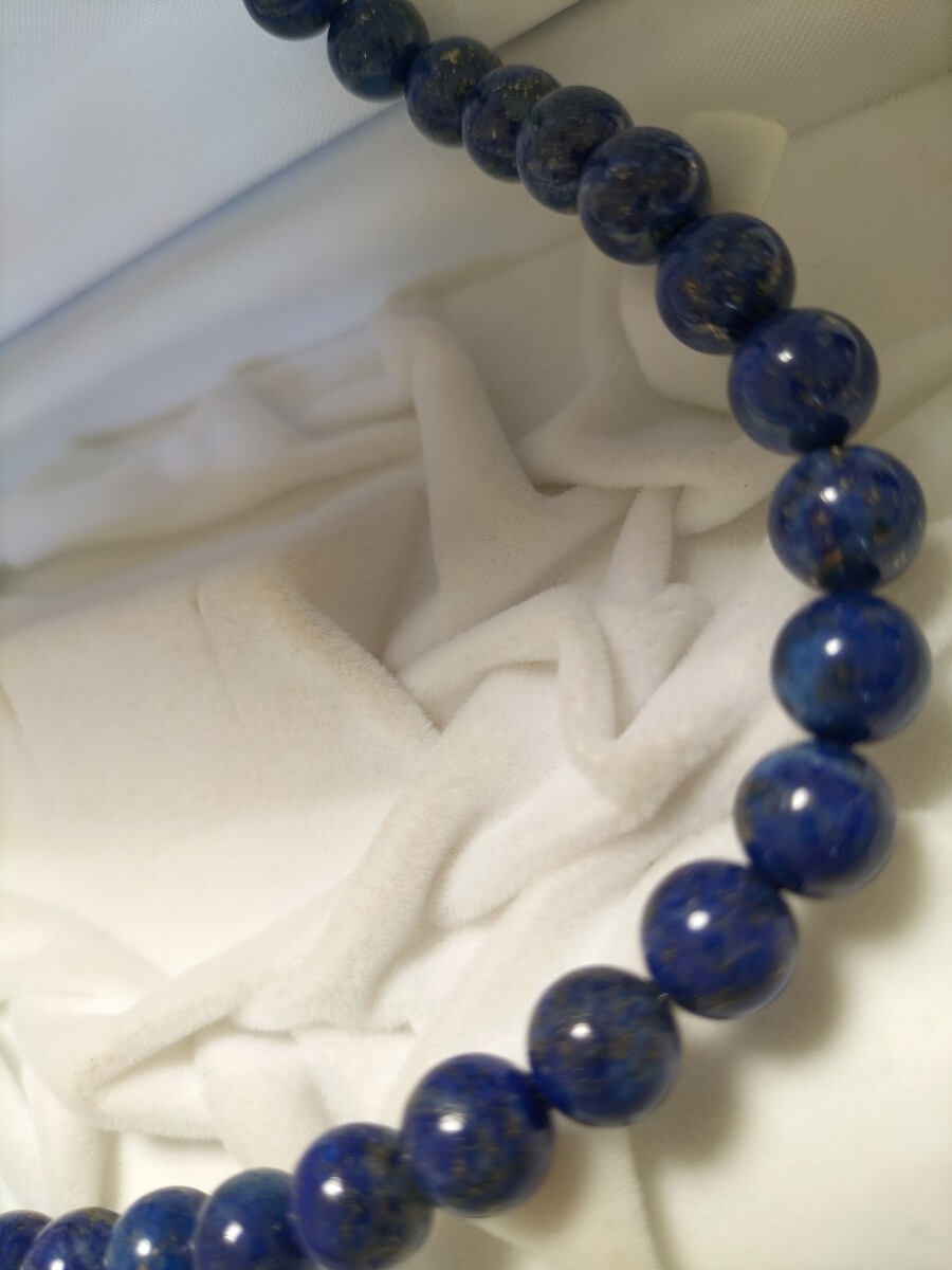 こちらは、天然無着色 ラピスラズリ ラウンド 8mm珠のマグネット式のネックレスでございます。