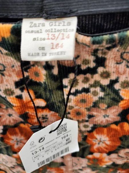 ap0558 ○送料無料 新品 (新古品) ZARA Girls ザラ ガールズ コーデュロイ パンツ サイズ164cm グリーン スキニー 花柄 ウエストゴム