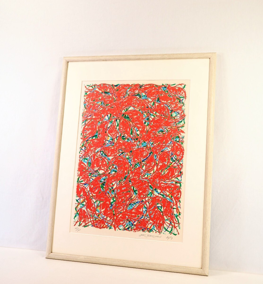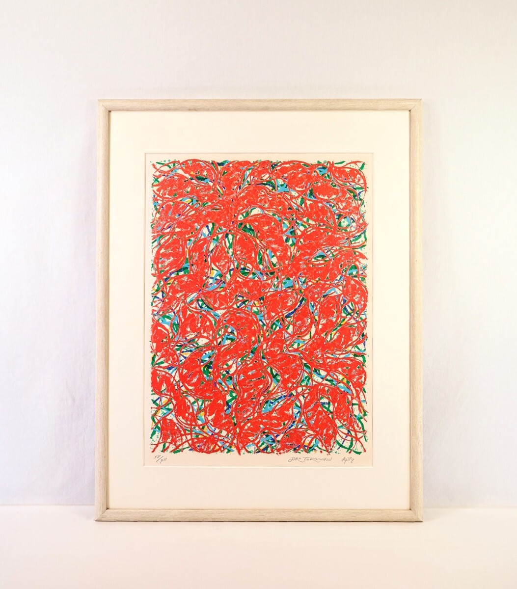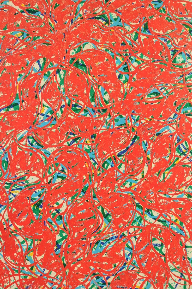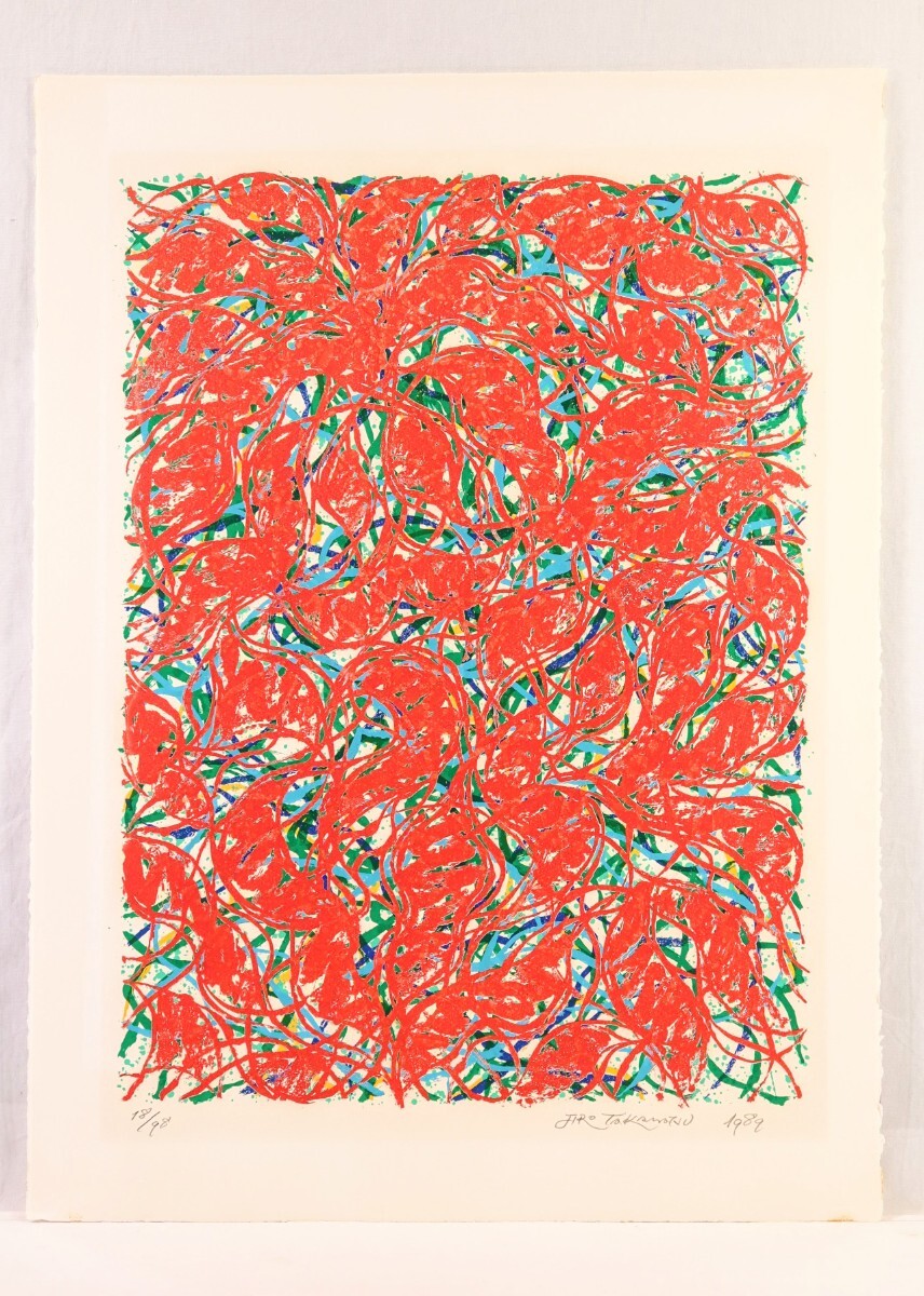真作 高松次郎 1989年シルクスクリーン「アンドロメダ A-5」画寸 45×62cm 色には性格がある 無数の曲線が織りなす多次元的空間感覚 9142