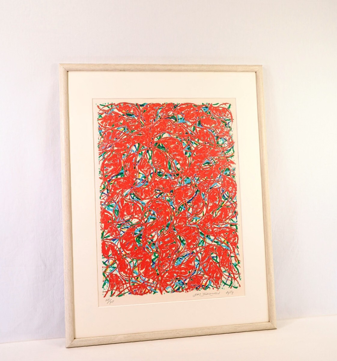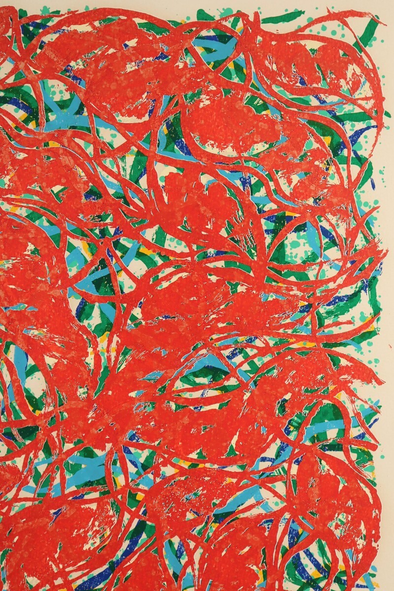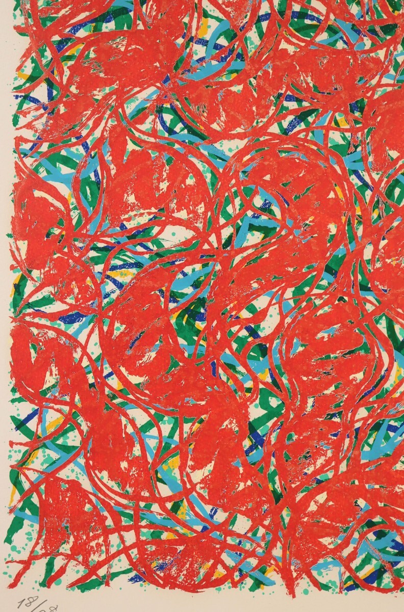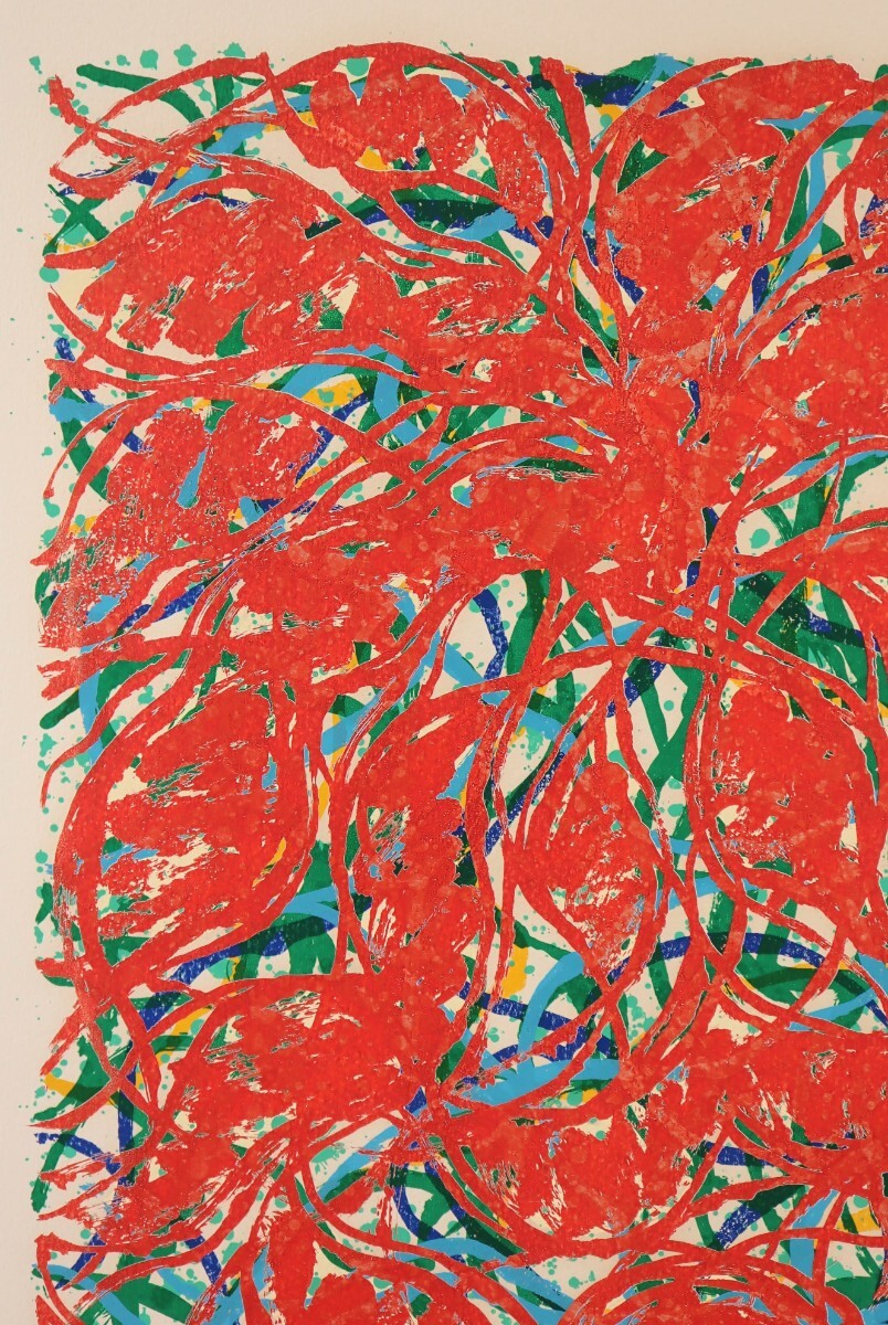 真作 高松次郎 1989年シルクスクリーン「アンドロメダ A-5」画寸 45×62cm 色には性格がある 無数の曲線が織りなす多次元的空間感覚 9142