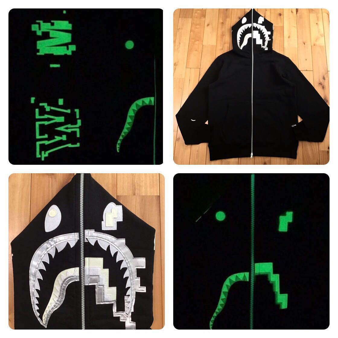 a bathing ape ★蓄光★ DIGITAL SHARK FULL ZIP HOODIE ブラック Lサイズ です★