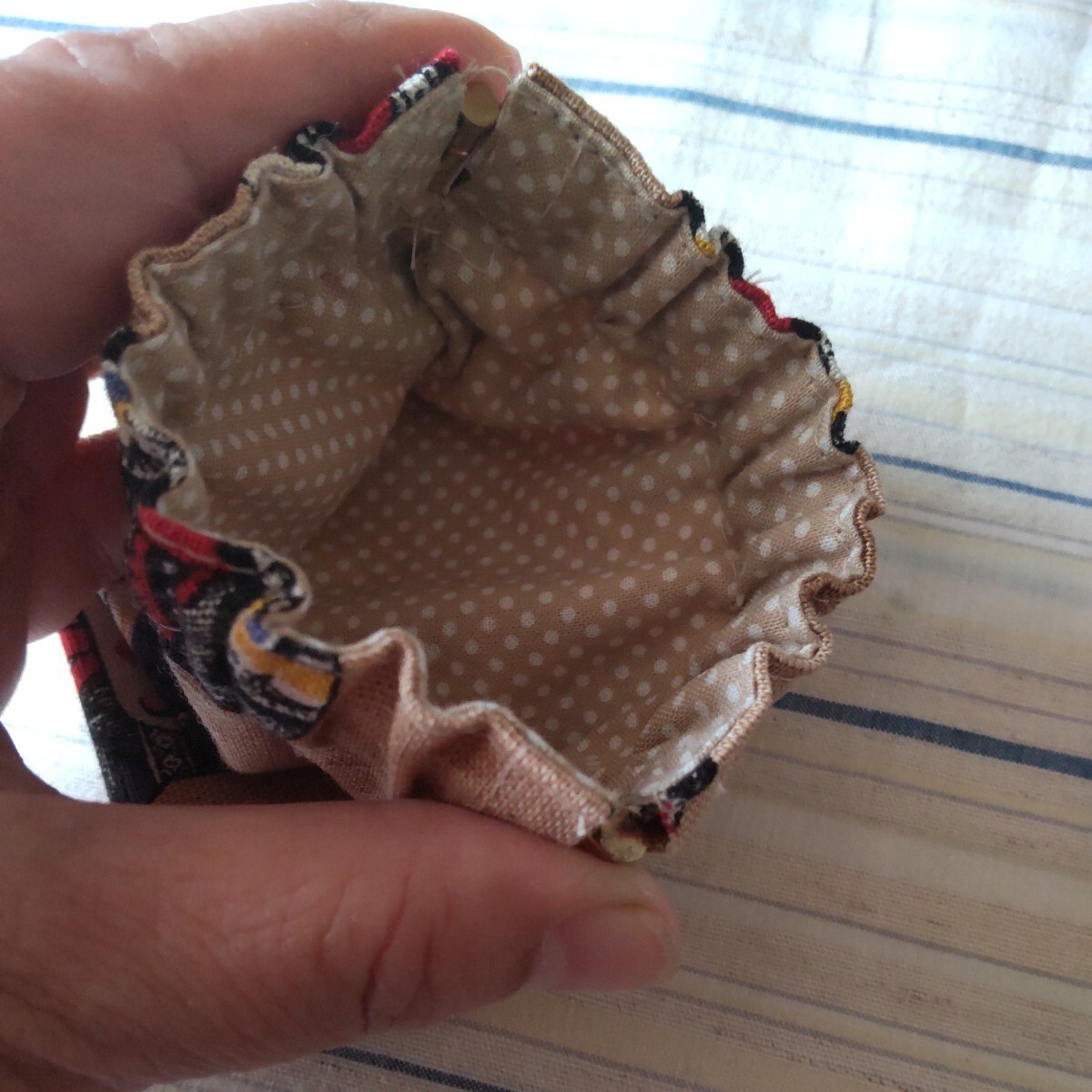 サイズタテ9.5cm、ヨコ11cmくらいです。10cmのバネ口金使用。