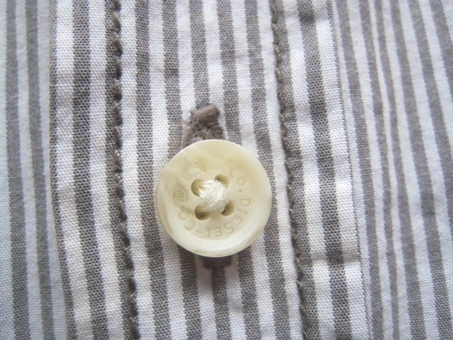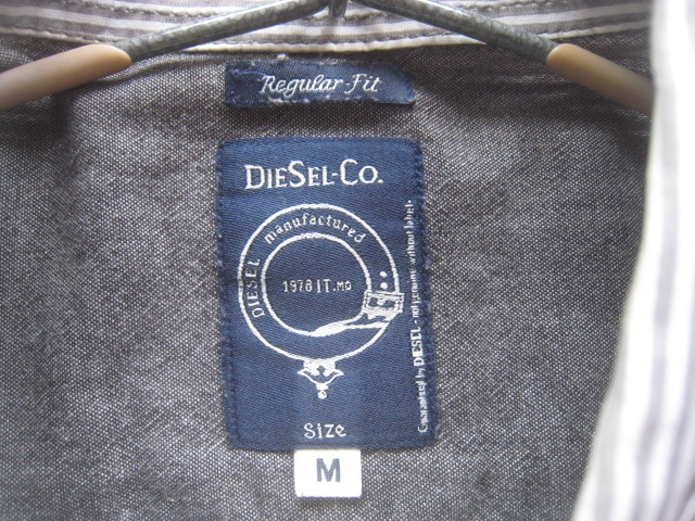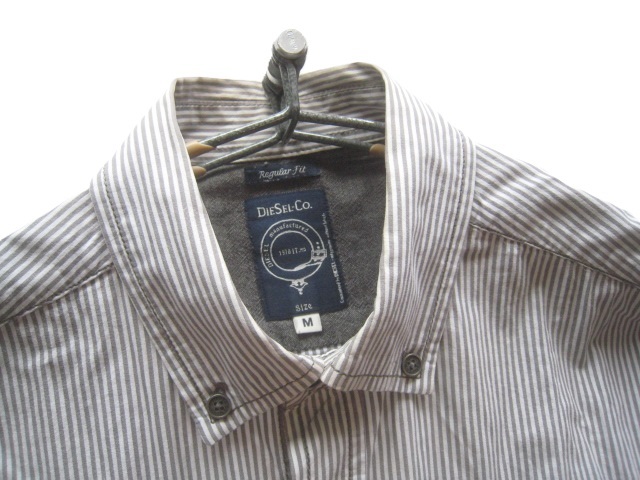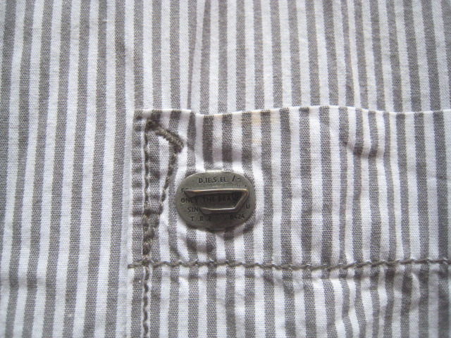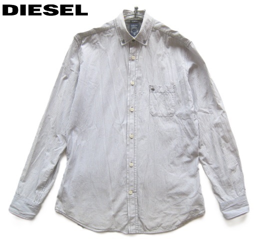 高級!! DIESEL 金属ロゴプレート付き ストライプ柄ボタンダウンシャツ
