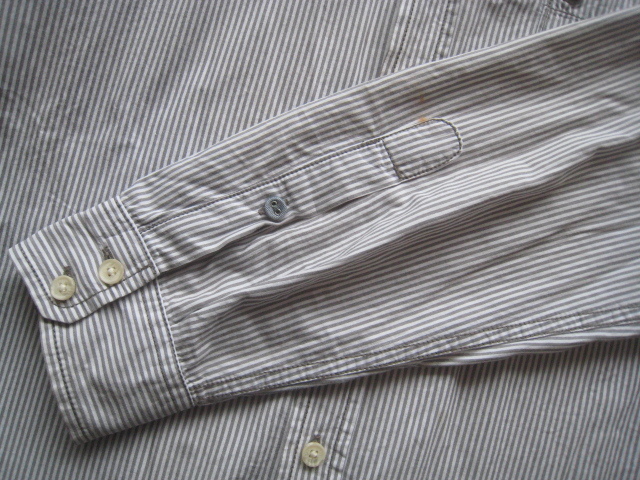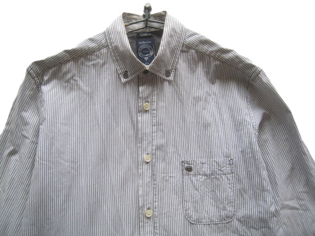 高級!!ディーゼル DIESEL*金属ロゴプレート付き ストライプ柄ボタンダウンシャツ M 白×グレー ブラックゴールド
