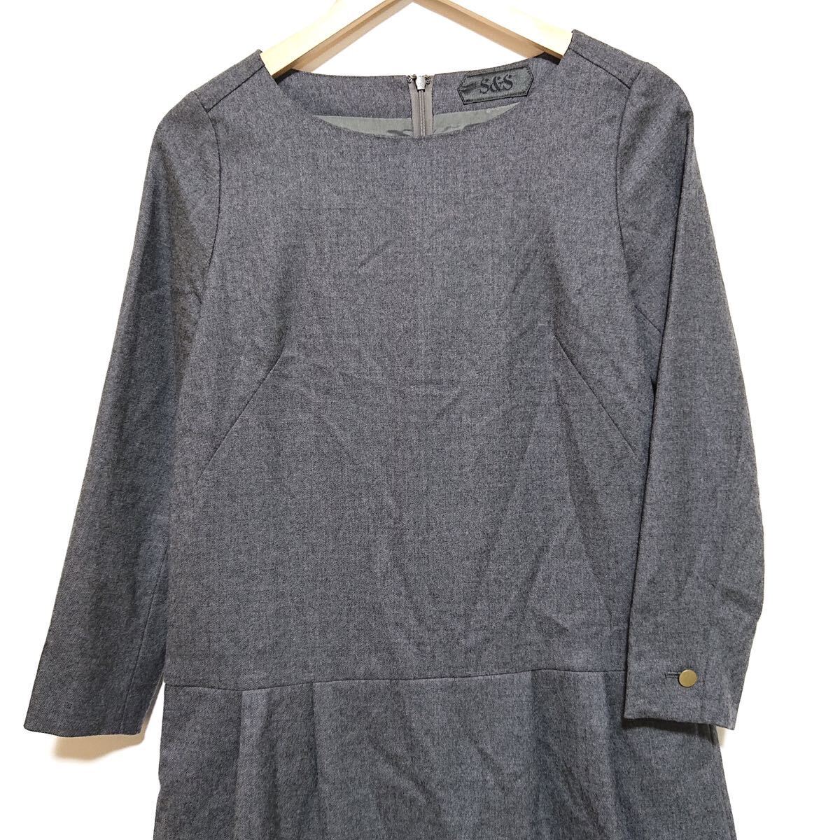H8733gg スピック&スパン Spick&Span S&S サイズM位 長袖ワンピース グレー レディース 切替デザイン ひざ丈 ウール99% 日本製 かわいい