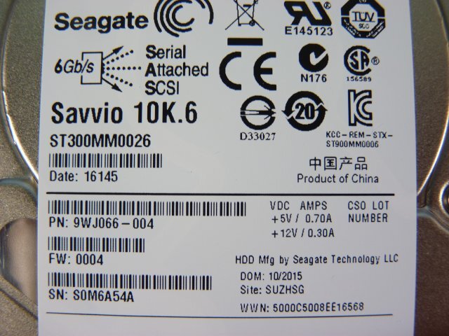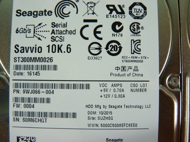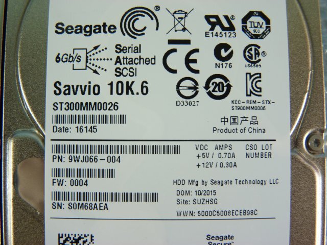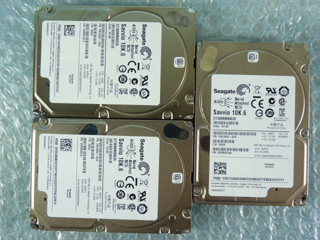 3個セット Seagate ST300MM0026 300GB 2.5インチ SAS HDD 6Gb 10K(10000)rpm 15mm / 9WJ066-004