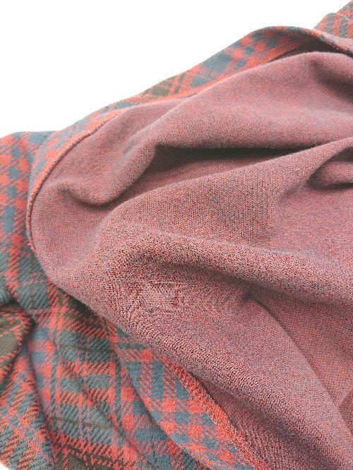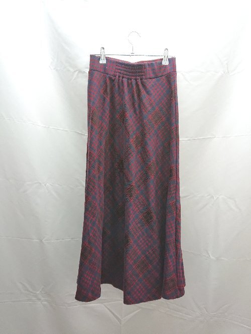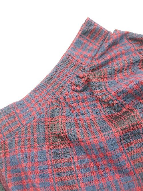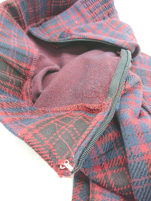 ◇ ViS ビス ウエストゴム サイドジップ チェック柄 起毛 ひざ丈 フレア スカート サイズF レッド系 レディース E