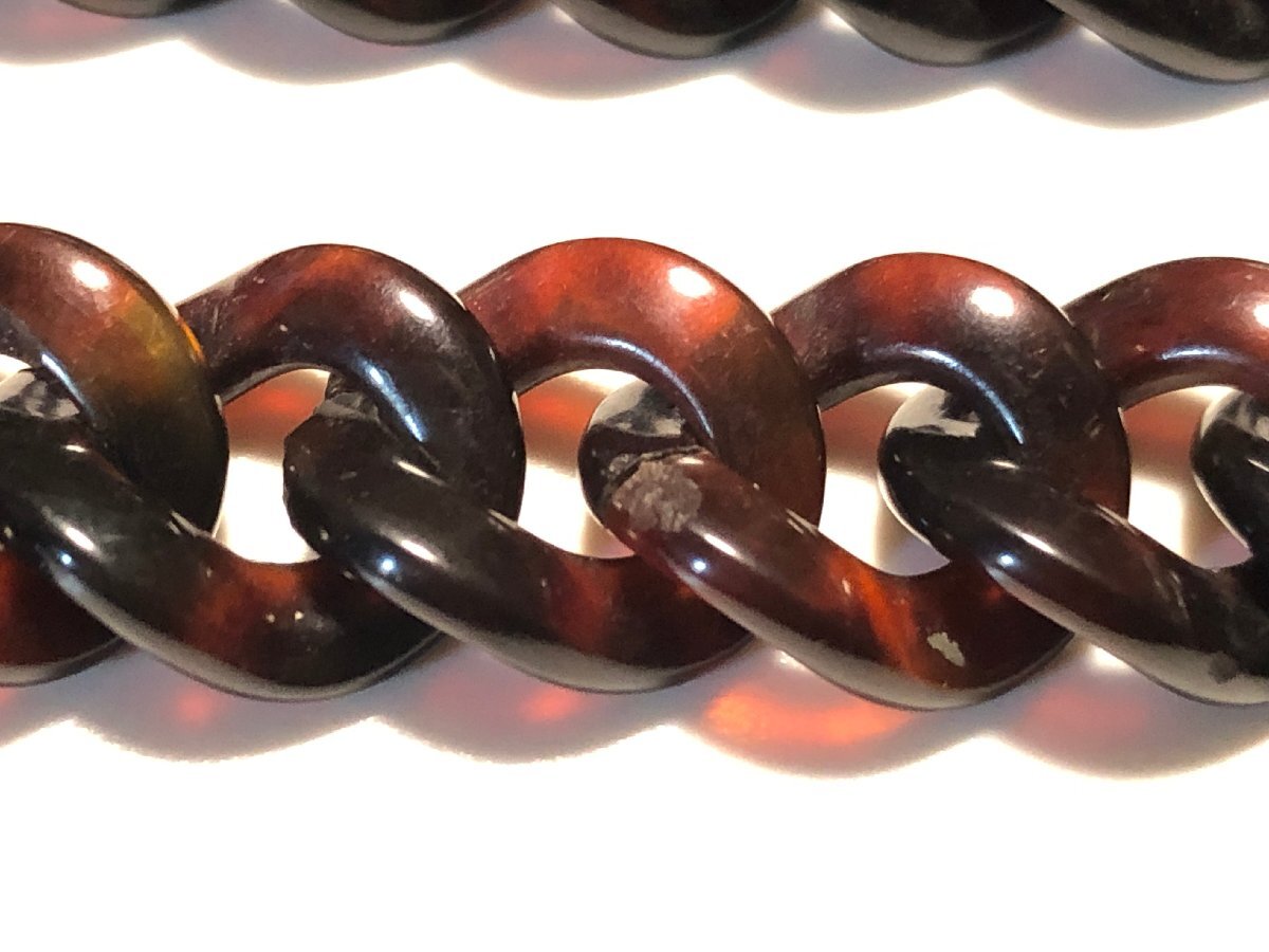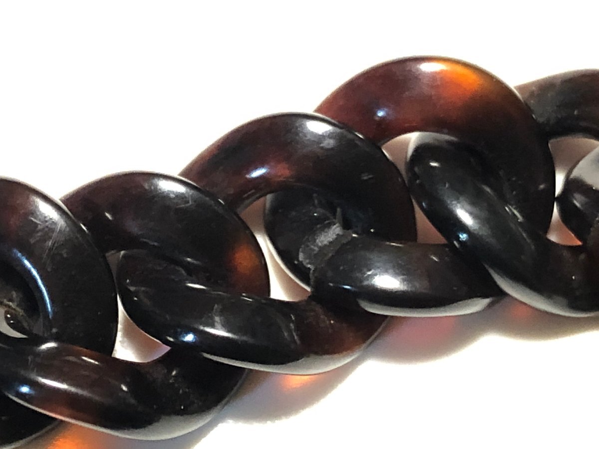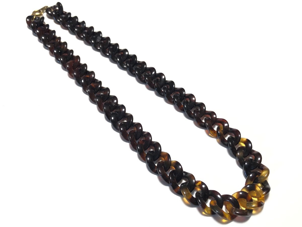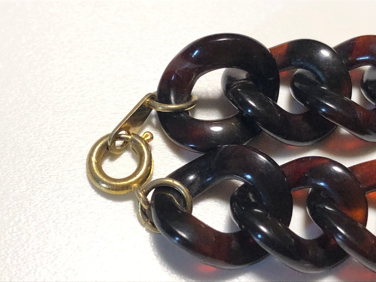 アンティークの本鼈甲を使用した、デザインネックレスです。鼈甲部分に数か所の虫食いがあります。金具部分にくすみがあります。