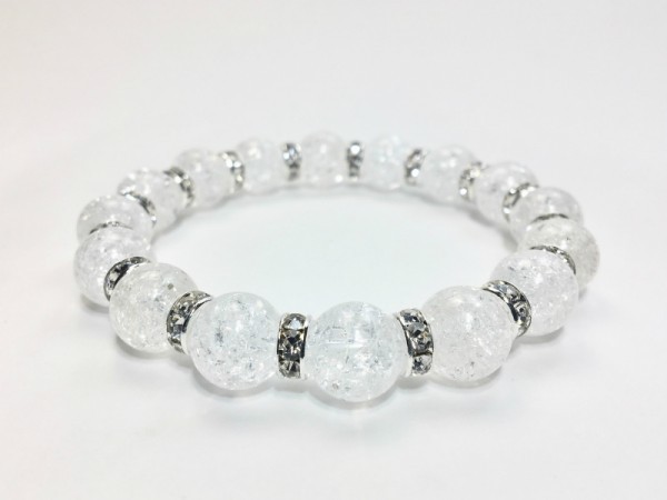 こちらは、12mm玉のクラック水晶を使用した天然石ブレスレットです。石との間にはロンデルを挟み高級感を演出しています。シンプルなデザインですのでどんなコーディネートとも合わせ易いブレスレットです。石大きさは12mm玉です。内径約18cmです。(サイズ変更の場合は取引ナビにてご連絡をお願いします。) 数に限りがございますので気になる方はお早めにどうぞ。