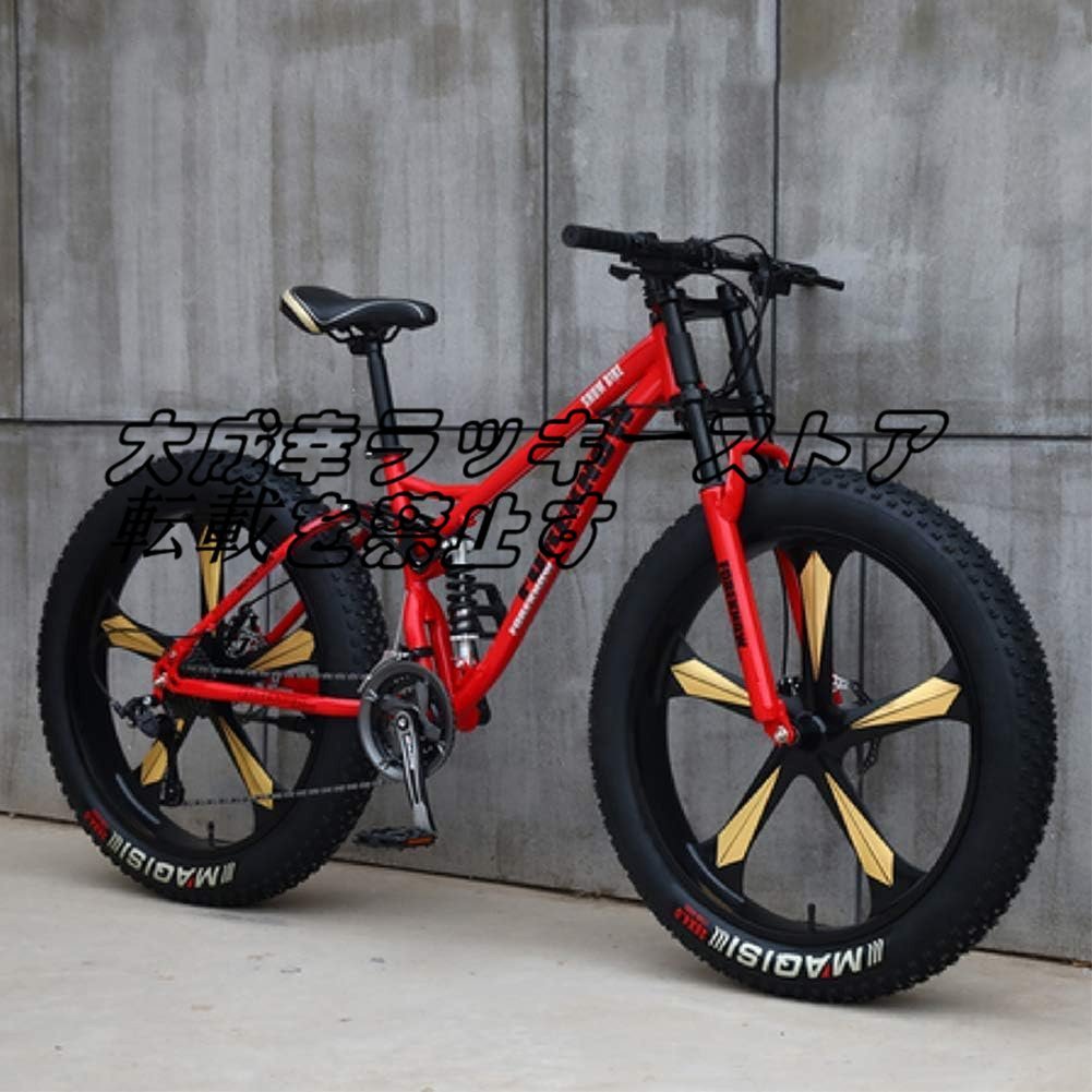 強くお勧め マウンテンバイク 26インチファットタイヤハードテイル 7速 デュアルサスペンションフレームとサスペンションフォーク F1547