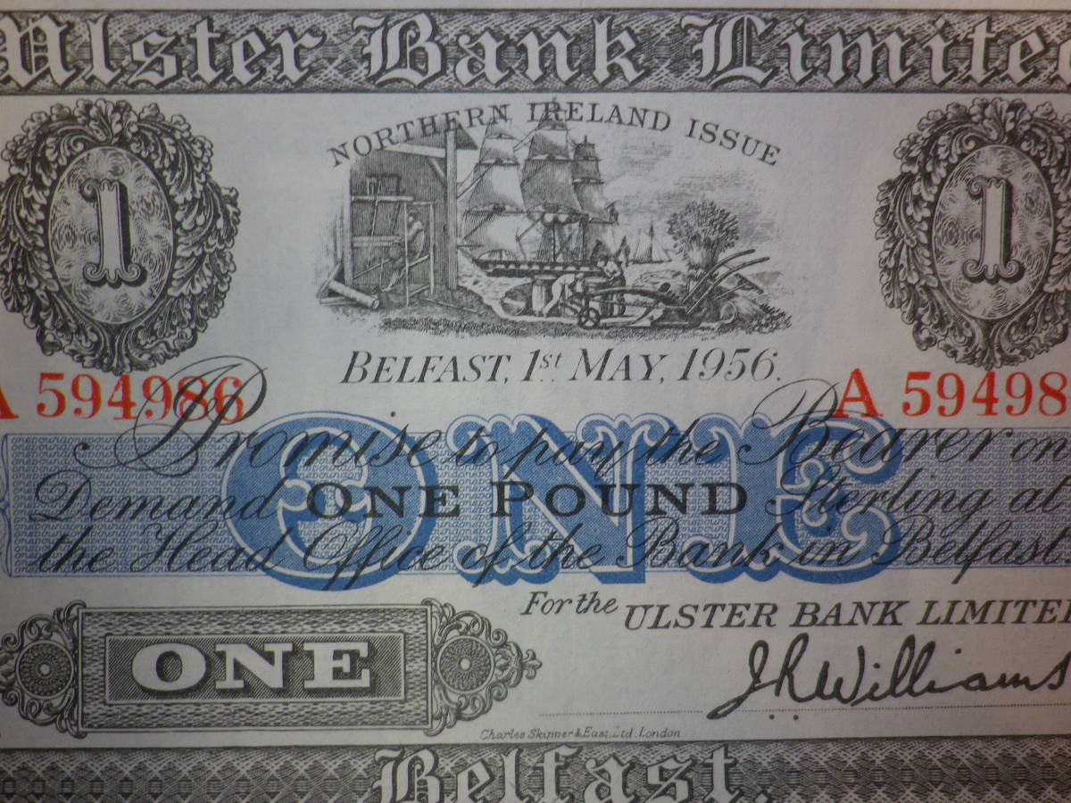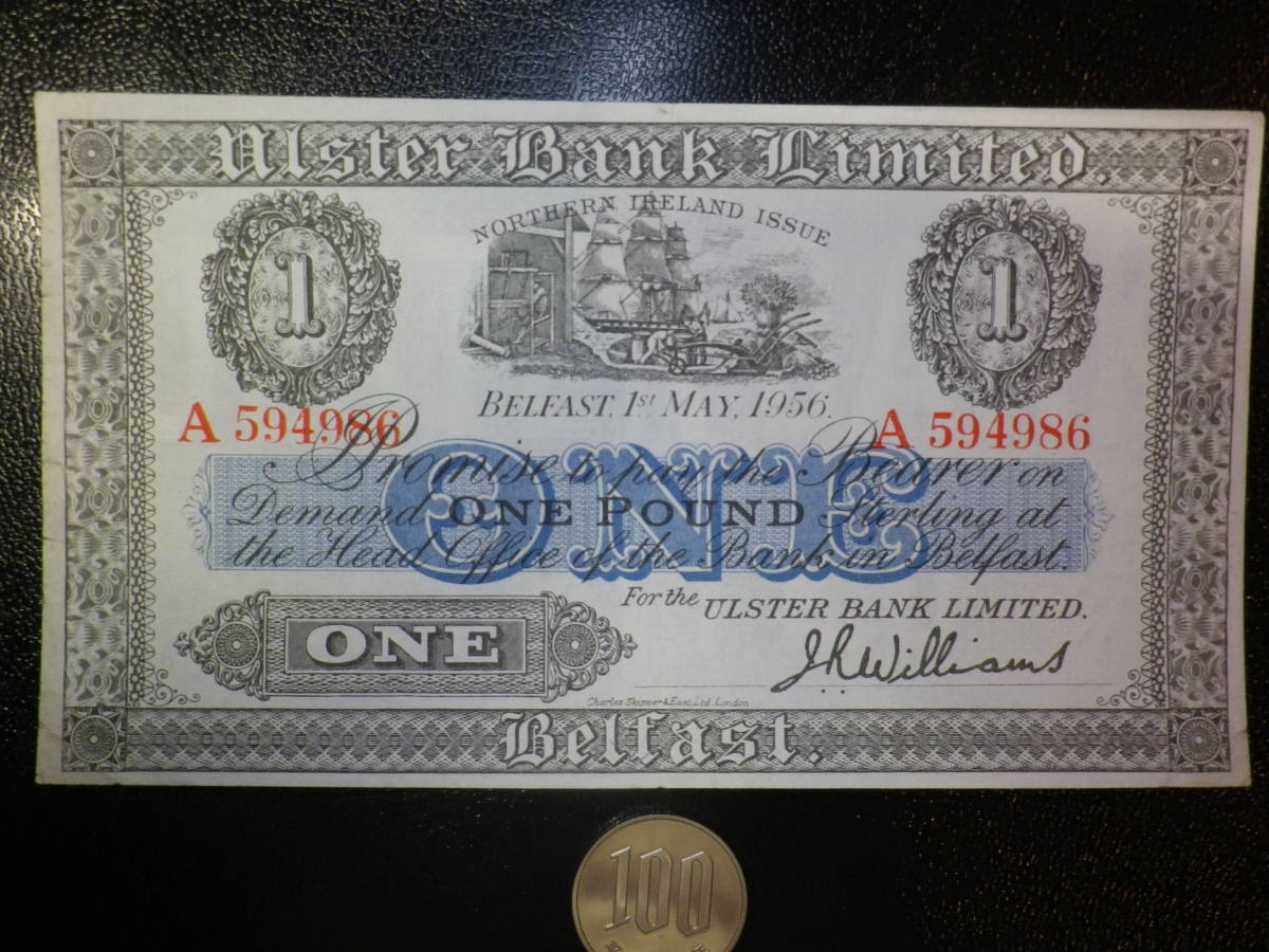 I'lster Bank ベルファスト 1st 1956年 1Pound 美品+p-315c